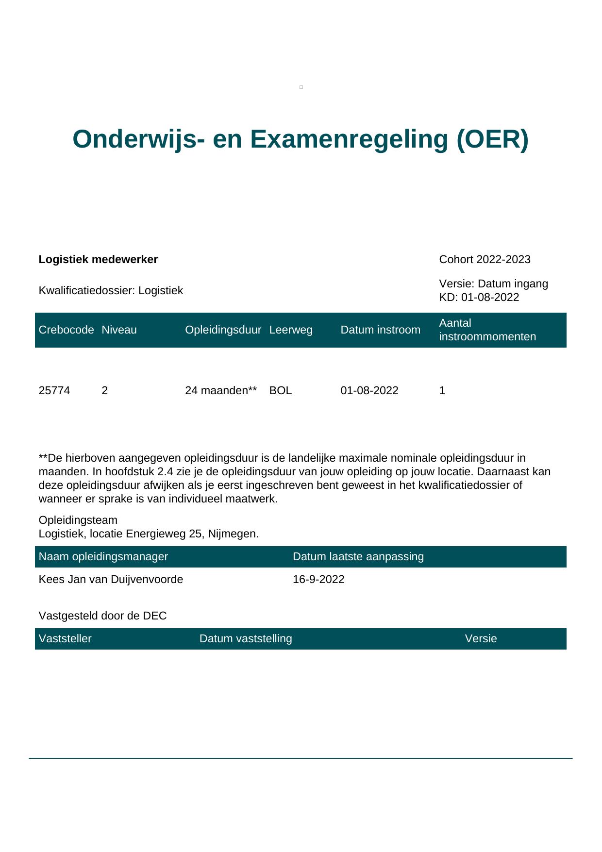 Logistiek medewerker 25774BBL-NYM in cohort 2022-2023