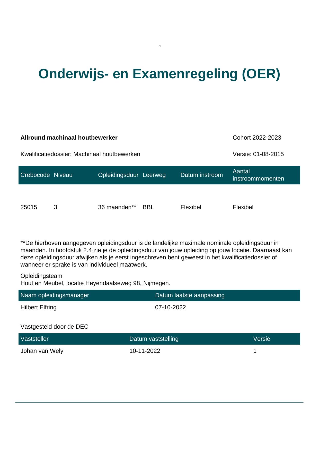 Allround machinaal houtbewerker 25015BBL-NYM in cohort 2022-2023
