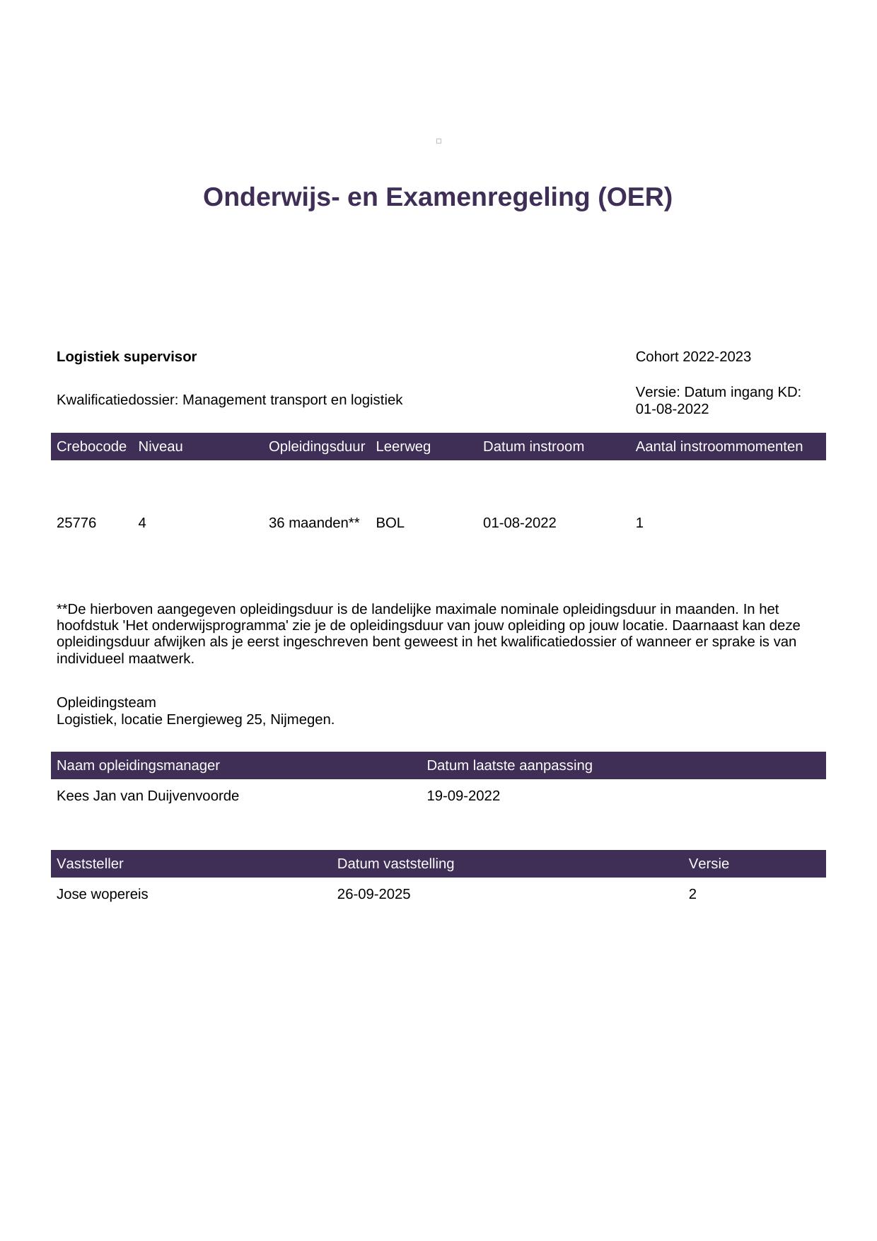Logistiek supervisor 25776BOL-NYM in cohort 2022-2023