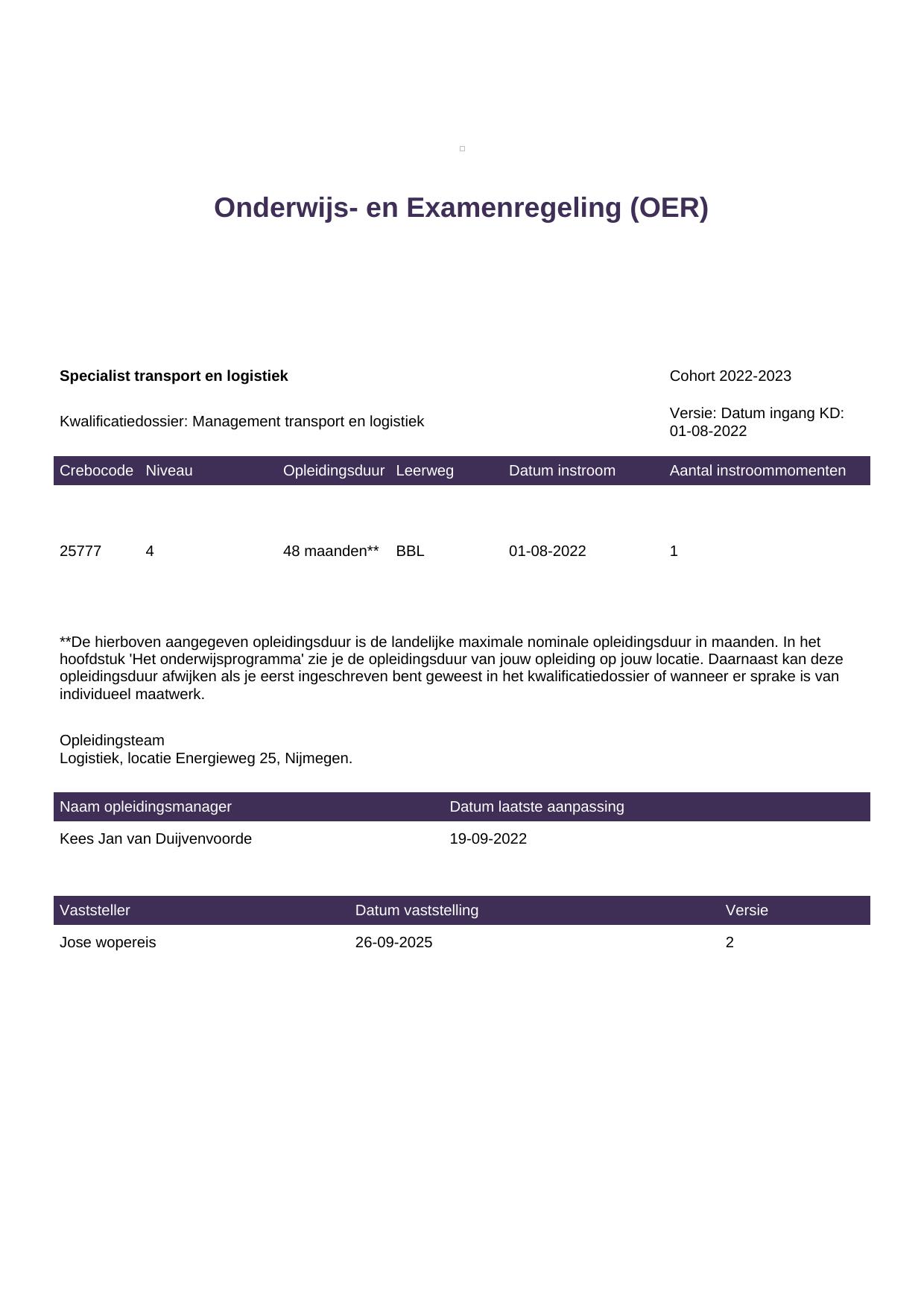 Specialist transport en logistiek 25777BBL-NYM in cohort 2022-2023