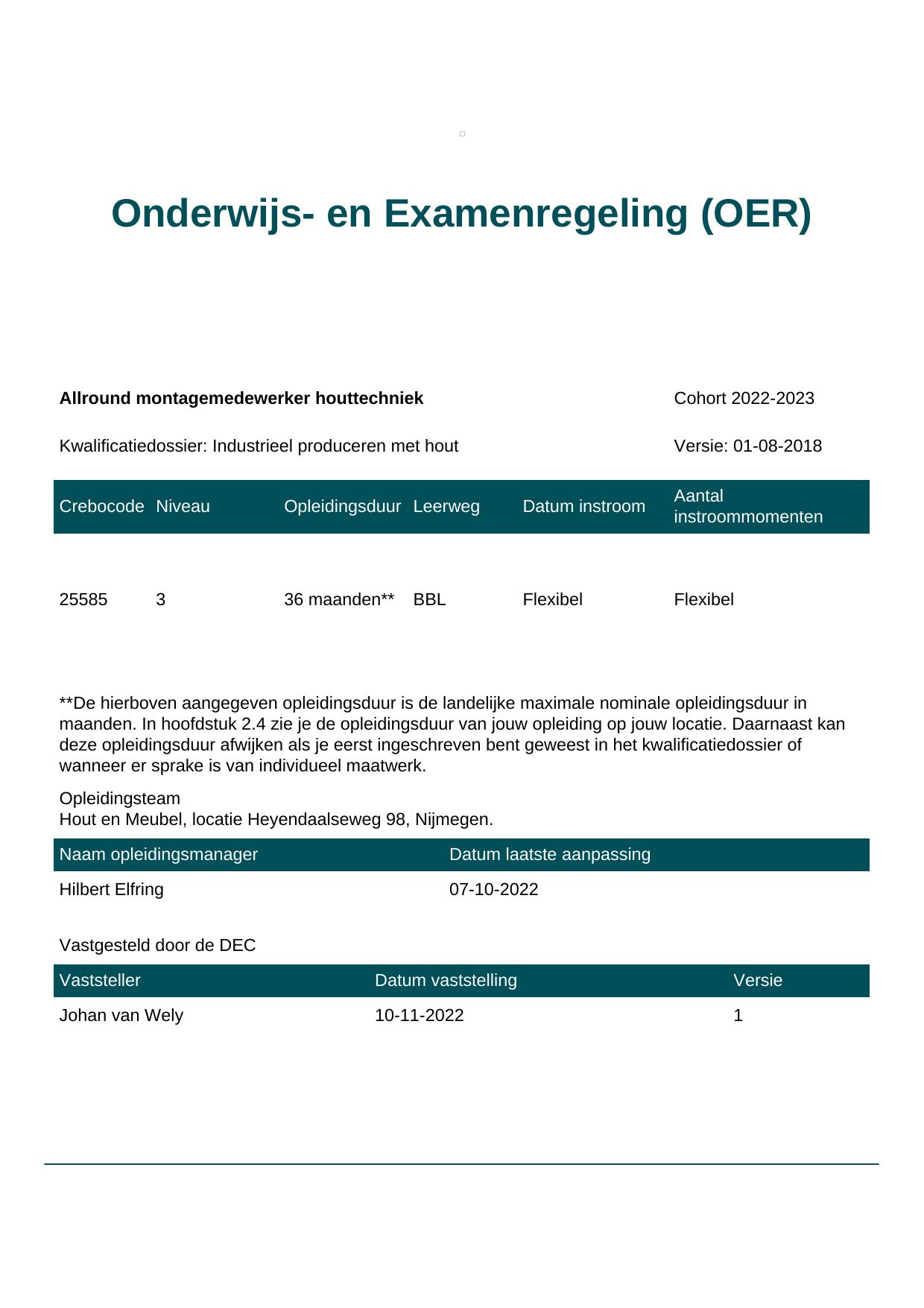 Allround montagemedewerker houttechniek 25585BBL-NYM in cohort 2022-2023