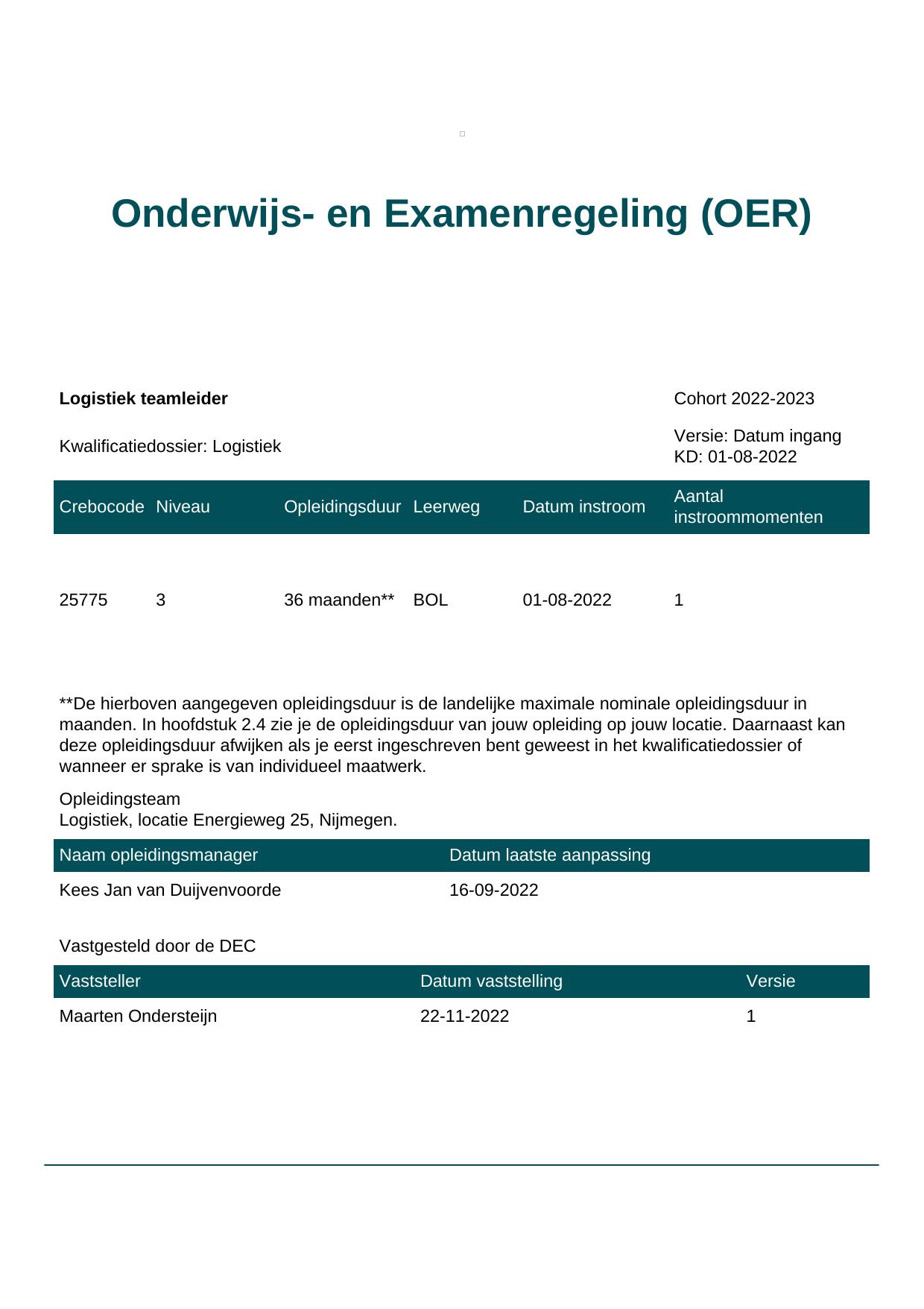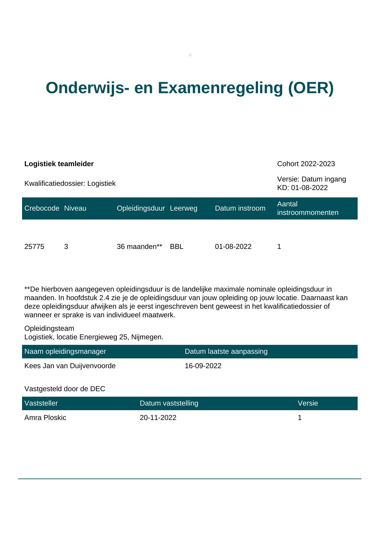 Logistiek teamleider 25775BBL-NYM in cohort 2022-2023