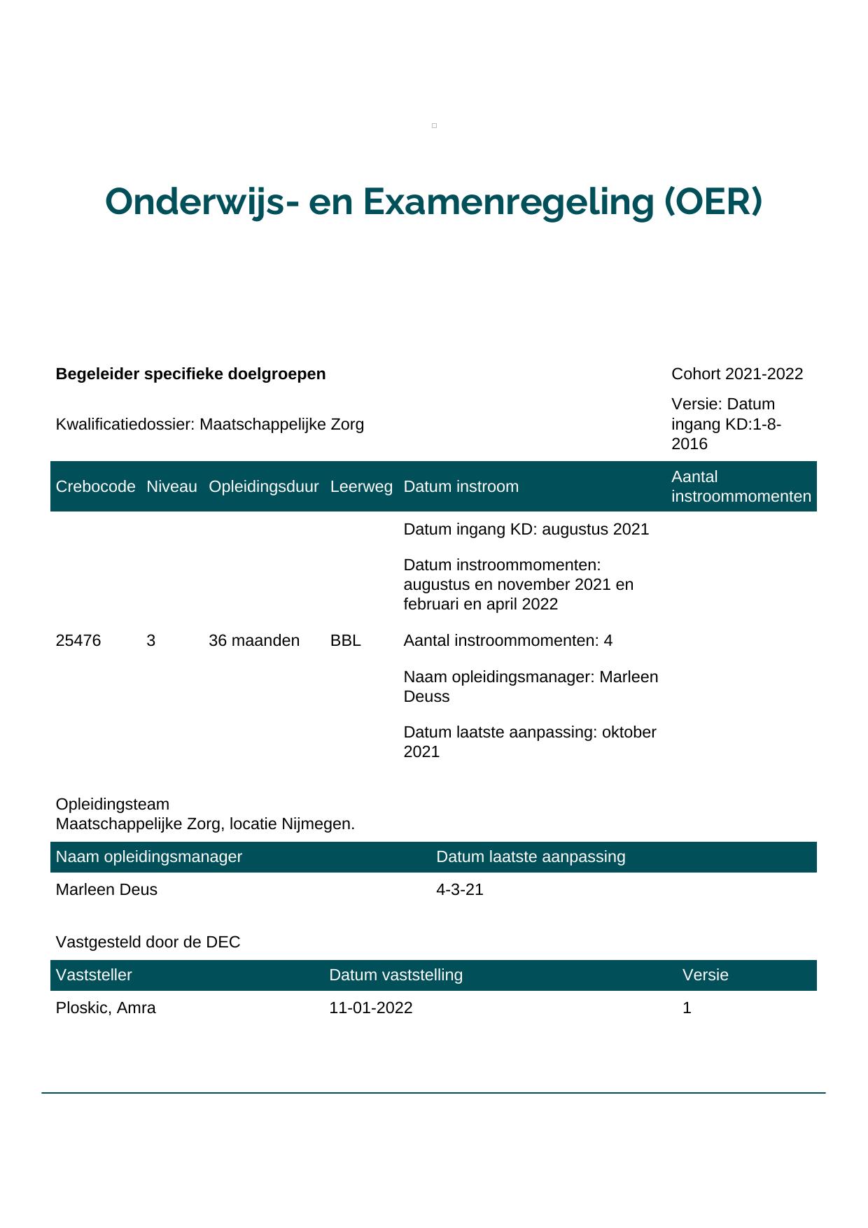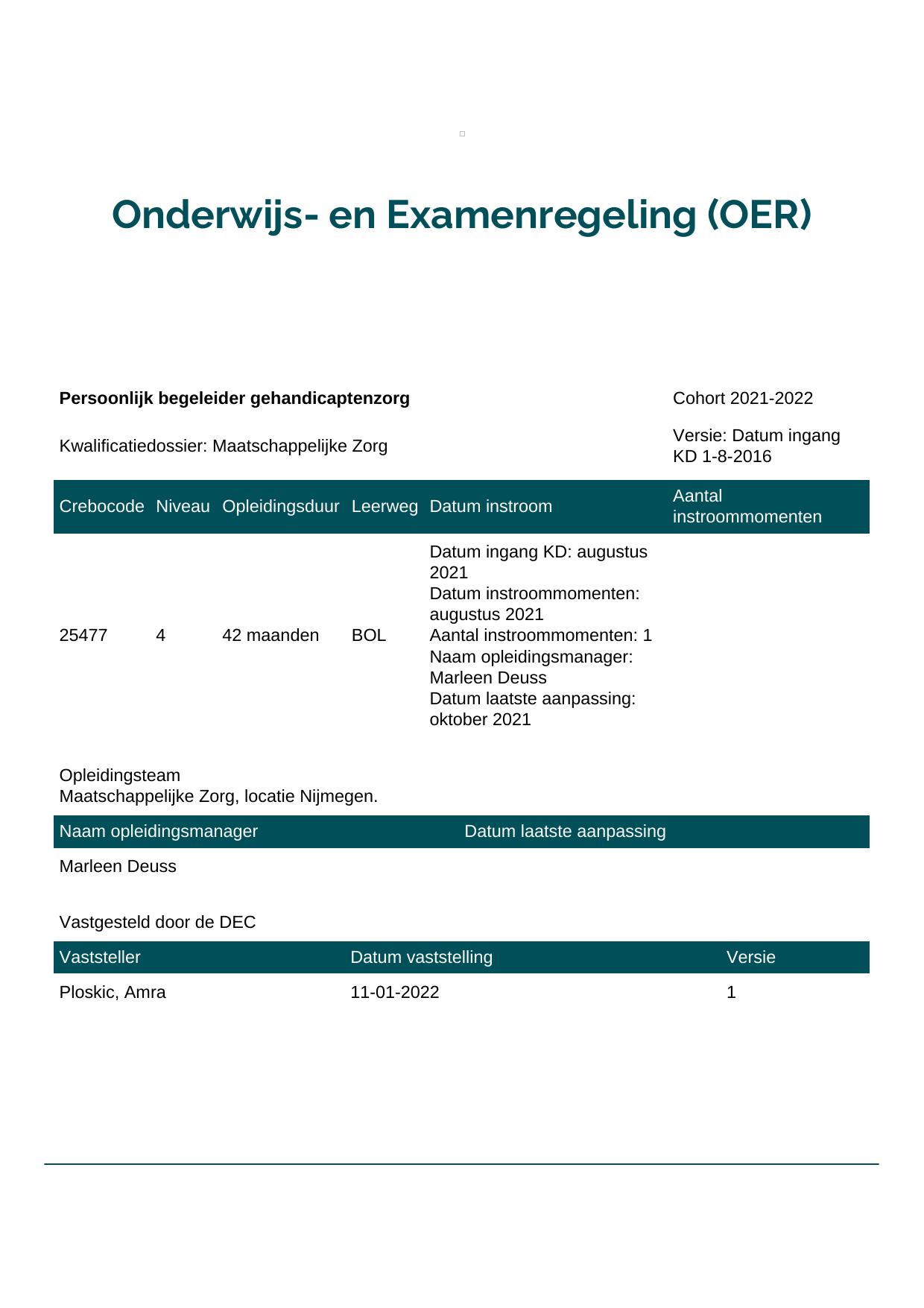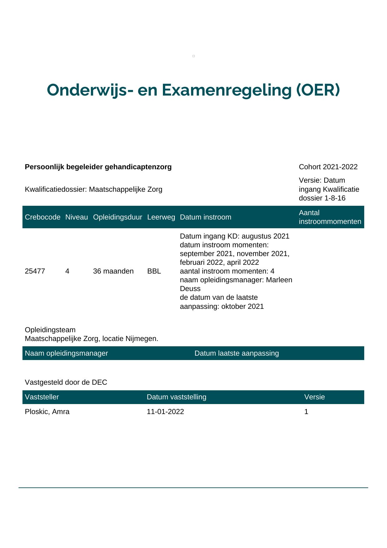 Persoonlijk begeleider gehandicaptenzorg 25477BBL-NYM in cohort 2021-2022