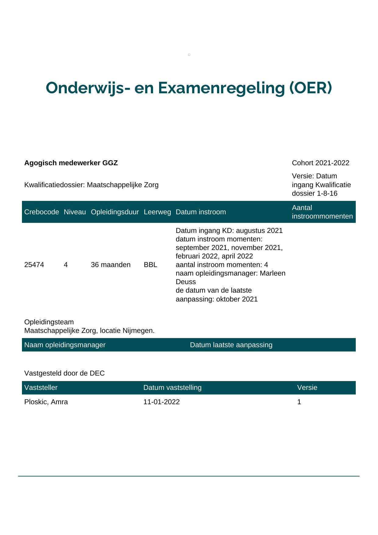 Agogisch medewerker GGZ 25474BBL-NYM in cohort 2021-2022