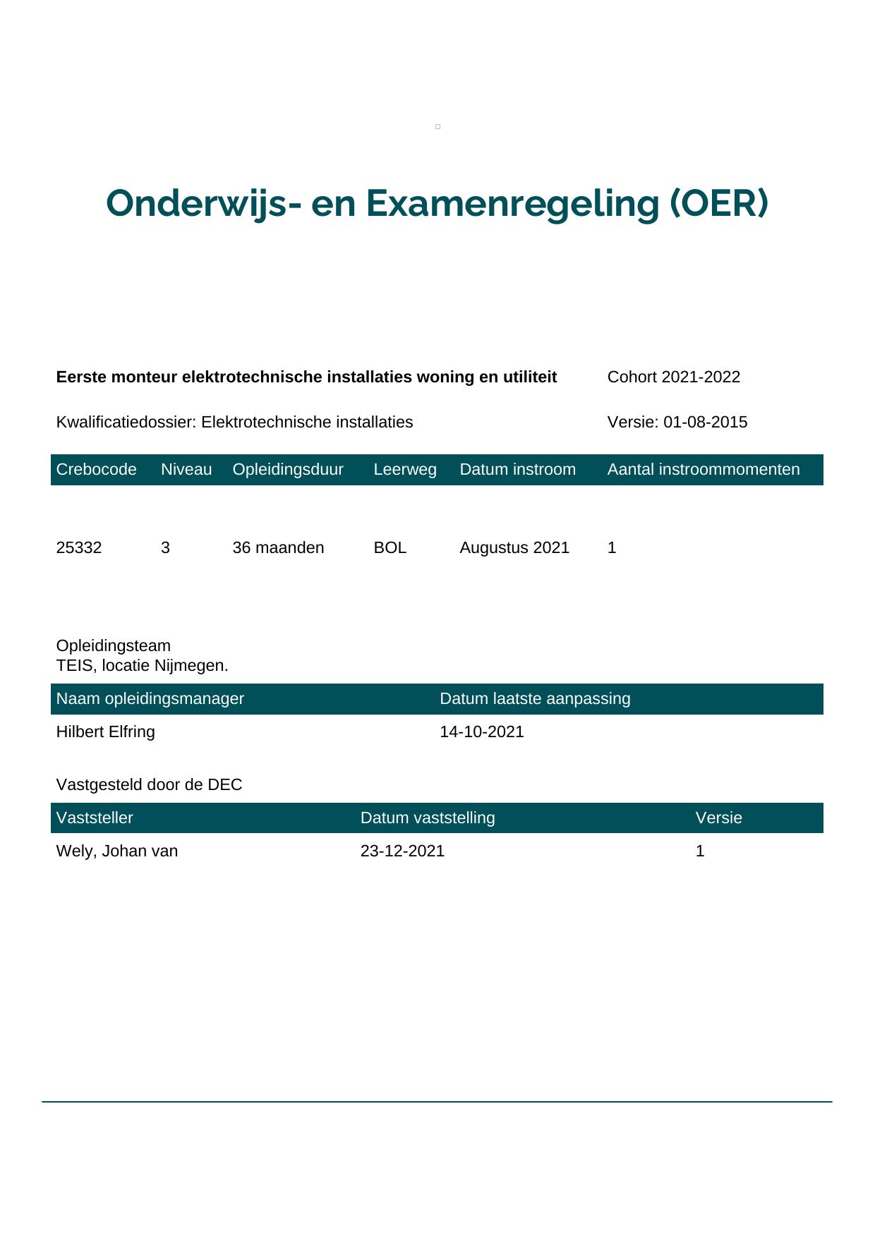 Eerste monteur elektrotechnische installaties woning en utiliteit 25332BOL-NYM in cohort 2021-2022
