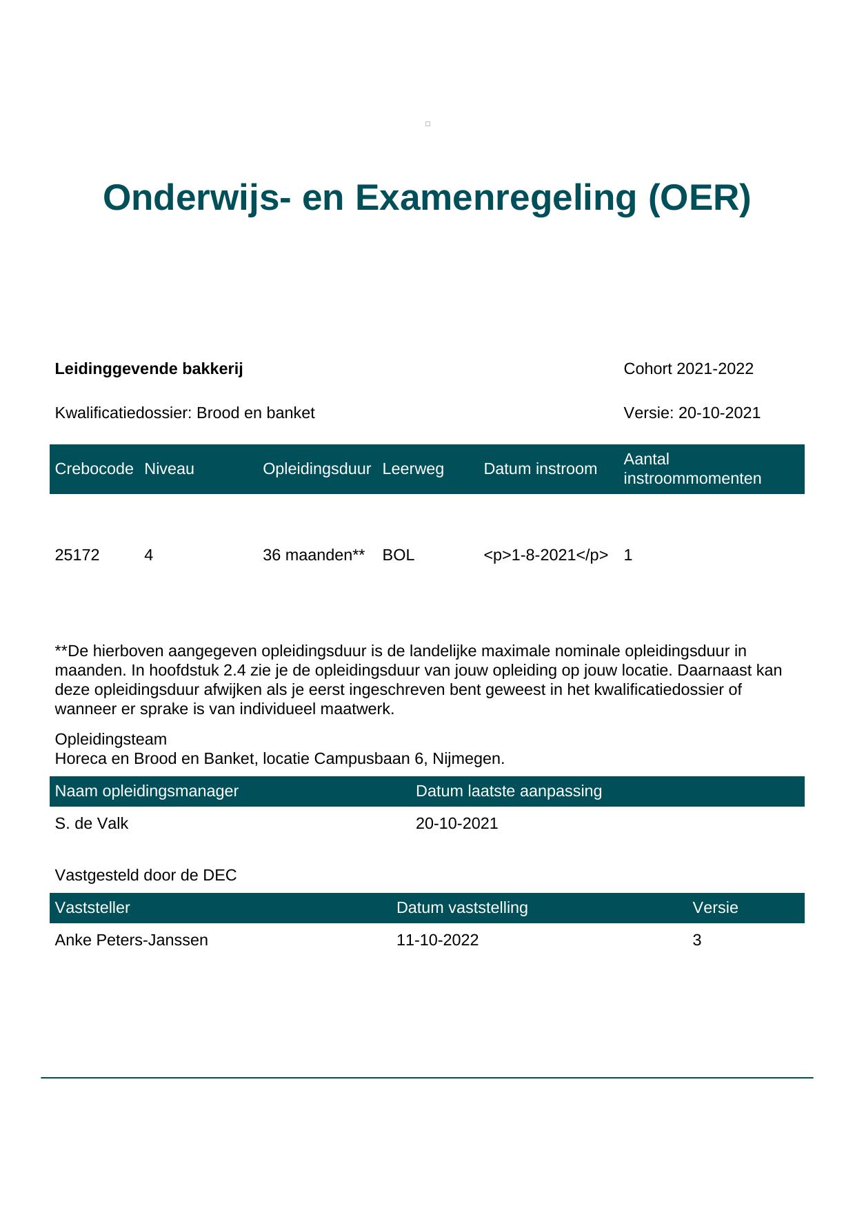 Leidinggevende bakkerij 25172BOL-NYM in cohort 2021-2022