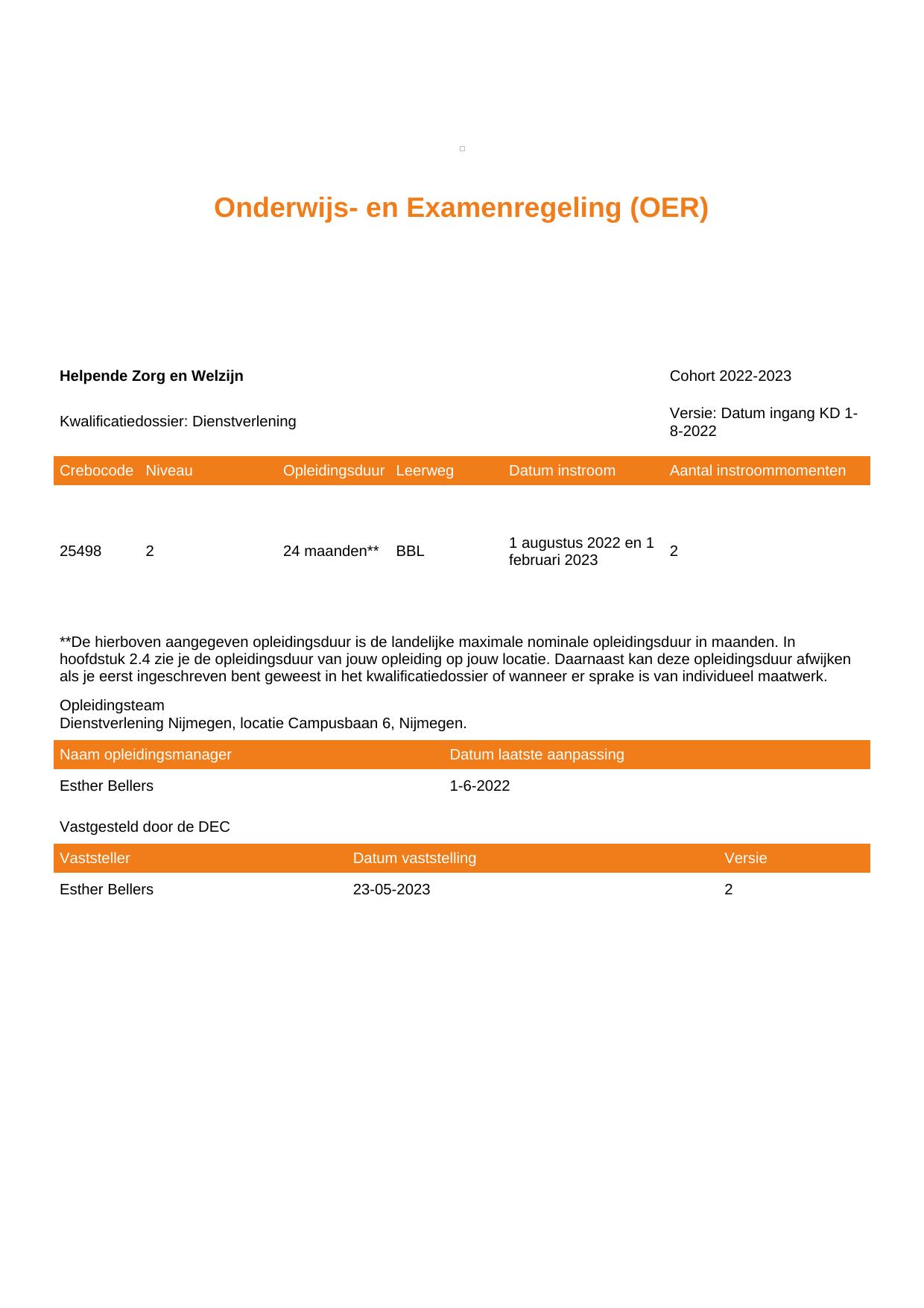 Helpende Zorg en Welzijn 25498BBL-NYM in cohort 2022-2023