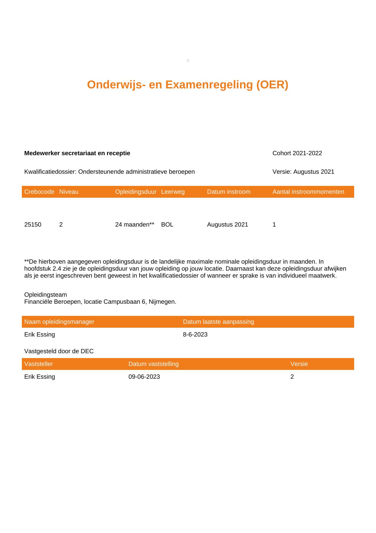 Medewerker secretariaat en receptie 25150BOL-NYM in cohort 2021-2022