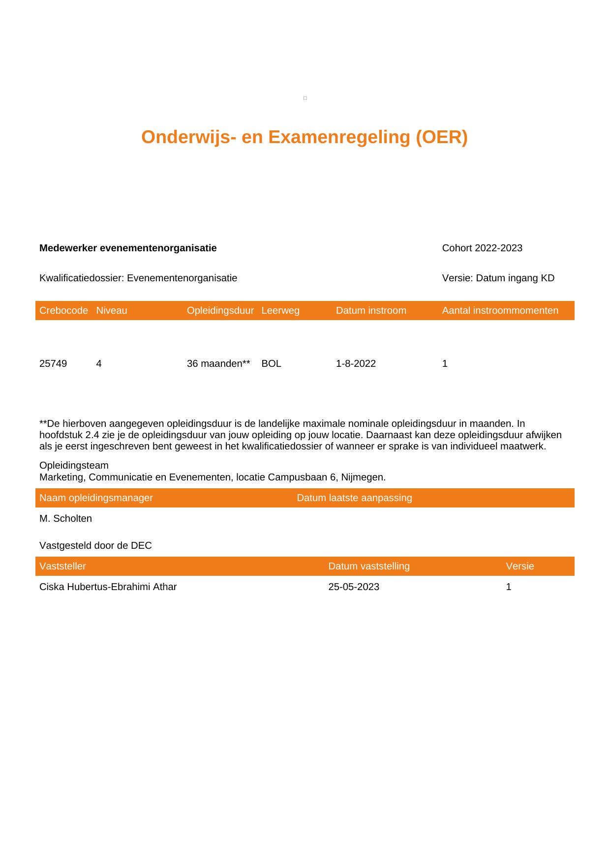 Medewerker evenementenorganisatie 25749BOL-NYM in cohort 2022-2023