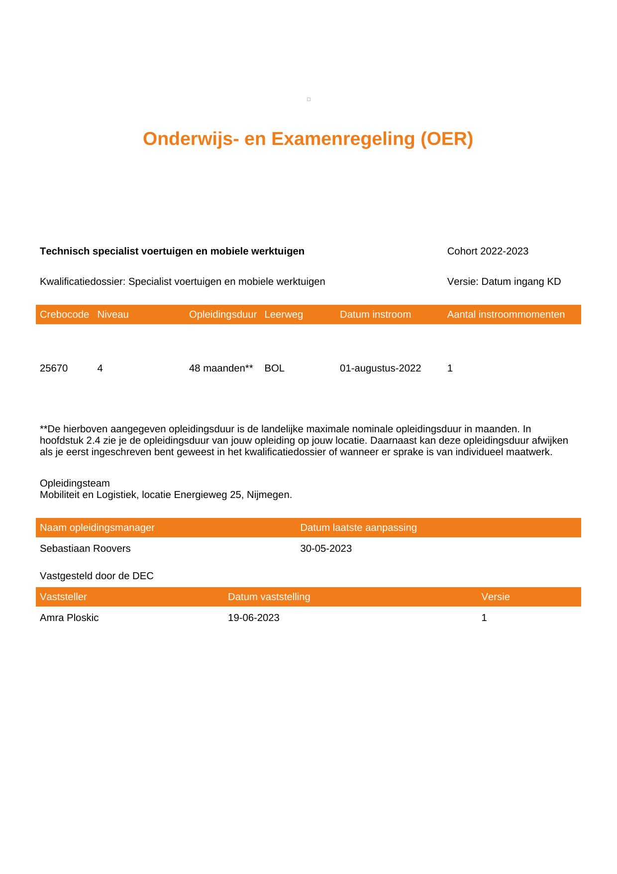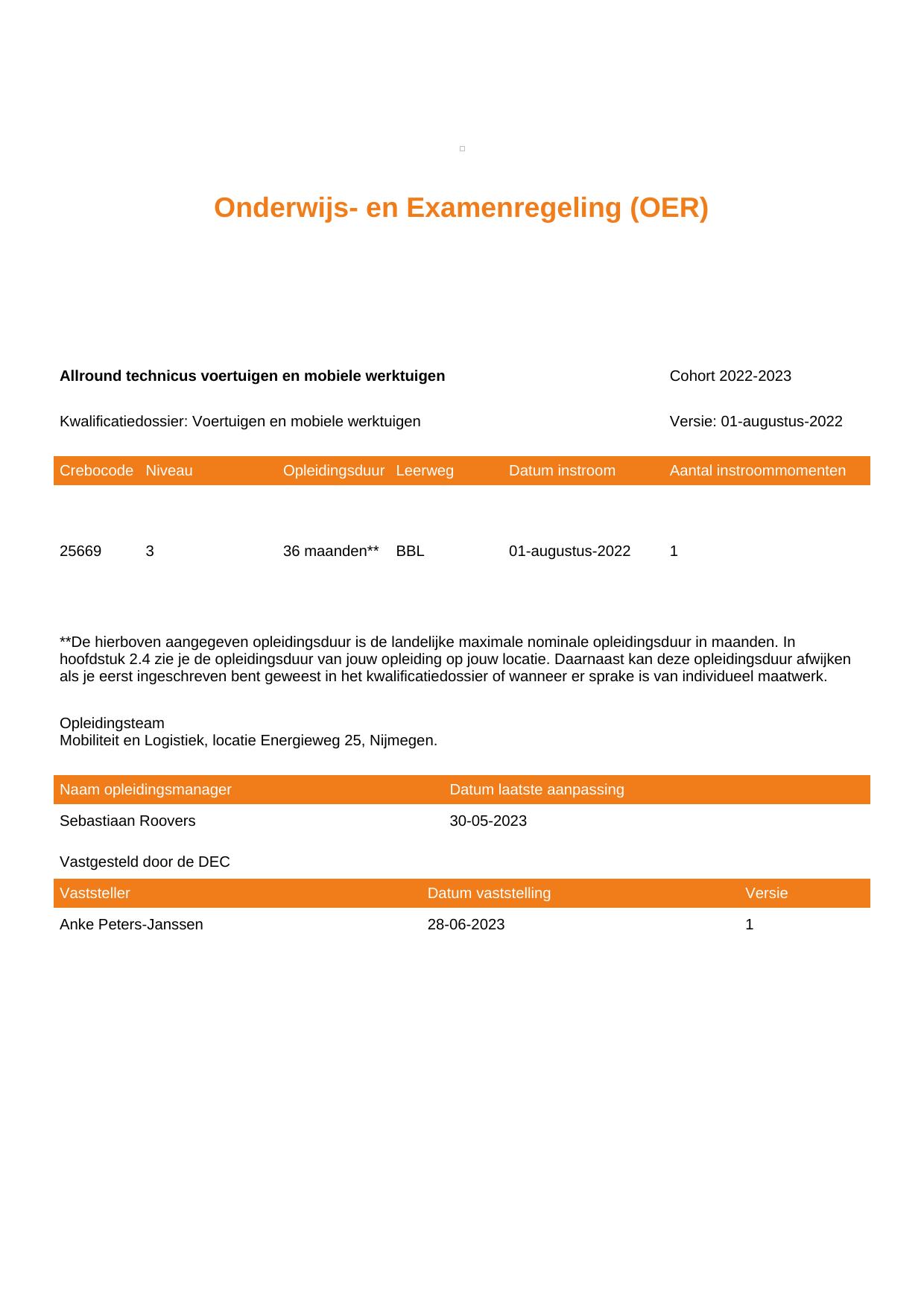 Allround technicus voertuigen en mobiele werktuigen 25669BBL-NYM in cohort 2022-2023