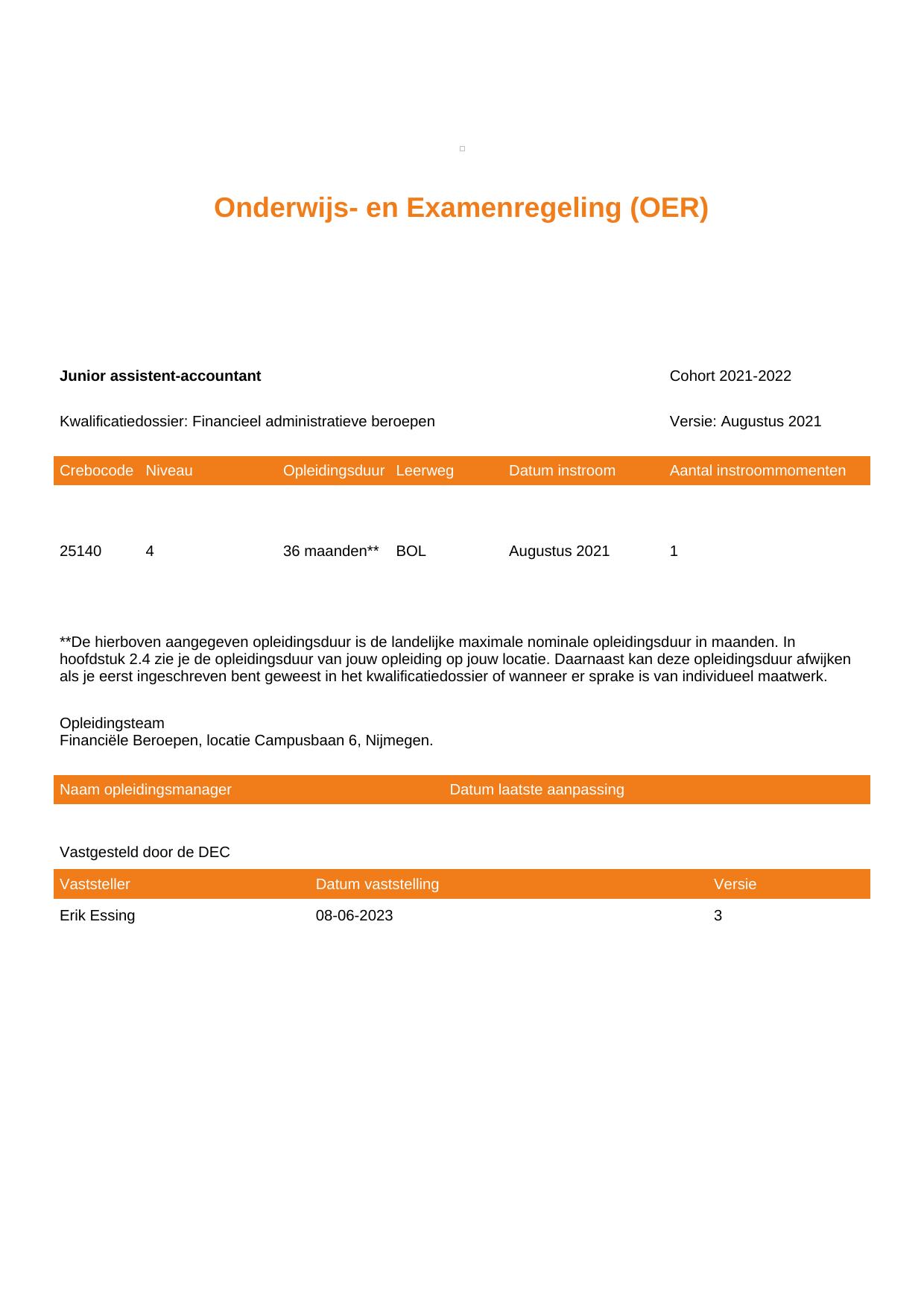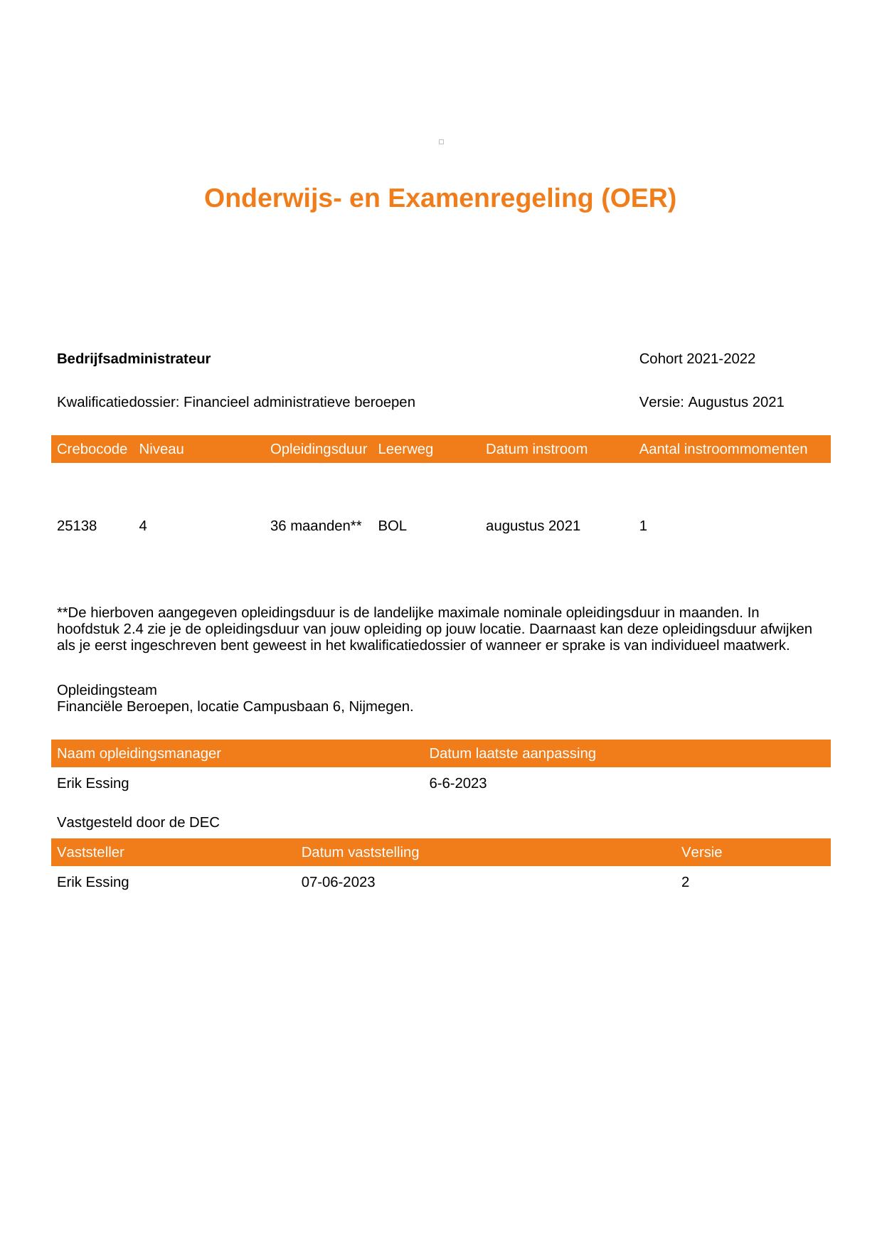 Bedrijfsadministrateur 25138BOL-NYM in cohort 2021-2022