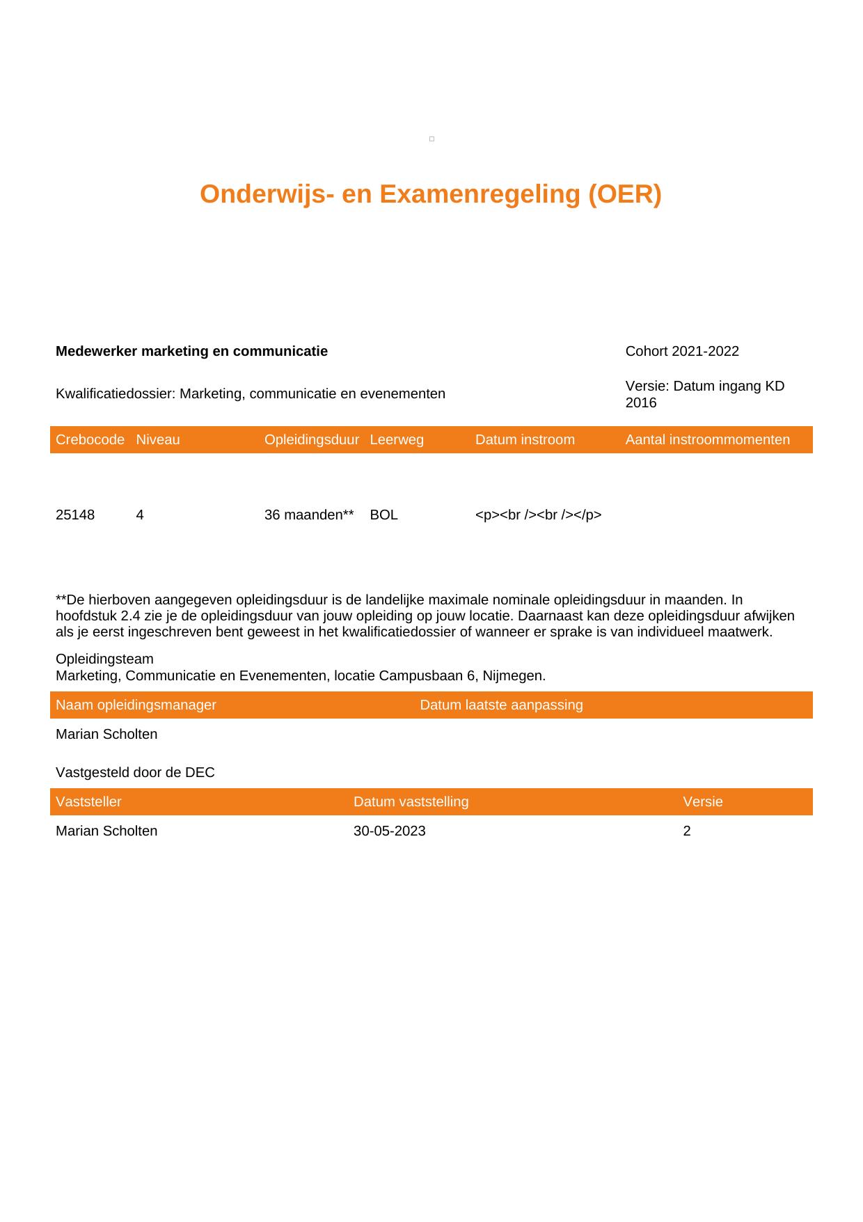 Medewerker marketing en communicatie 25148BOL-NYM in cohort 2021-2022