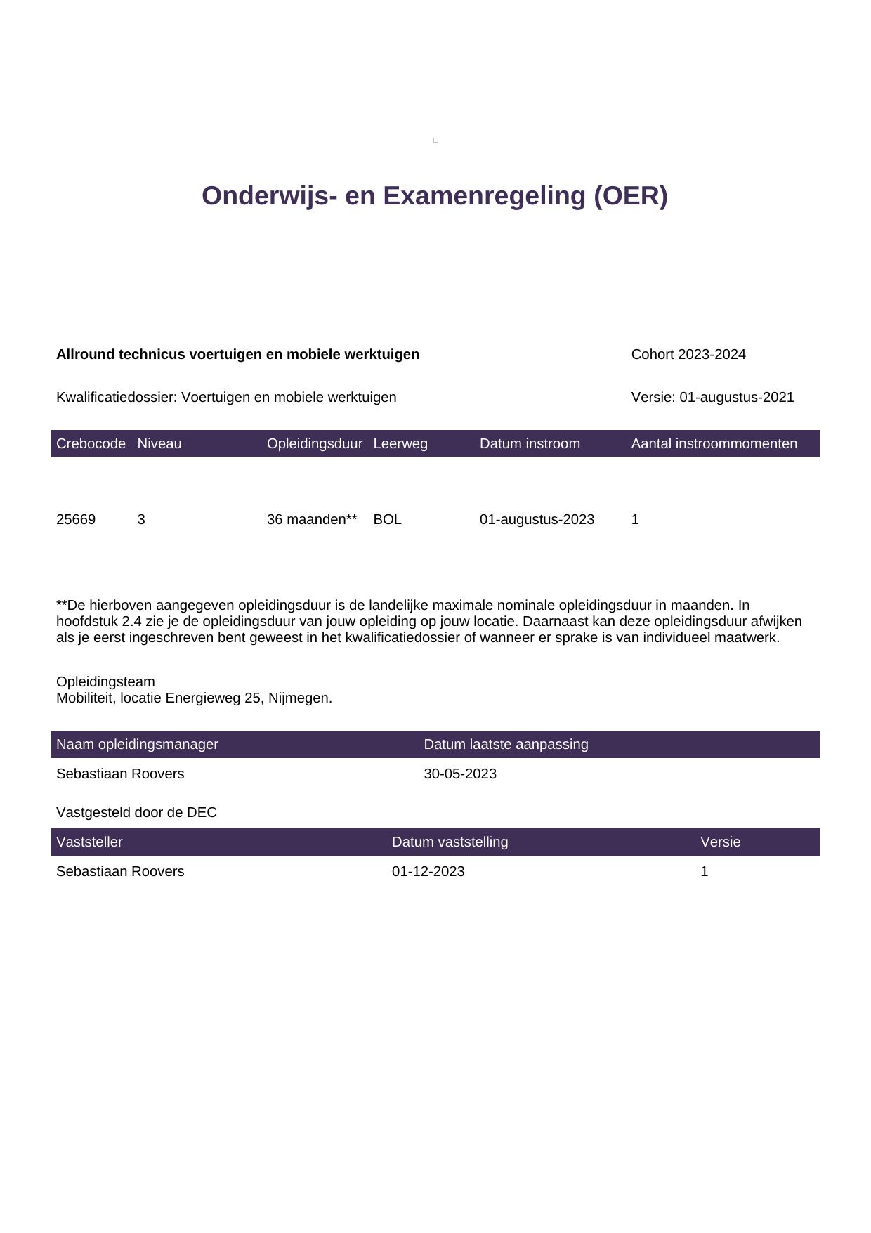 Allround technicus voertuigen en mobiele werktuigen 25669BOL-NYM in cohort 2023-2024