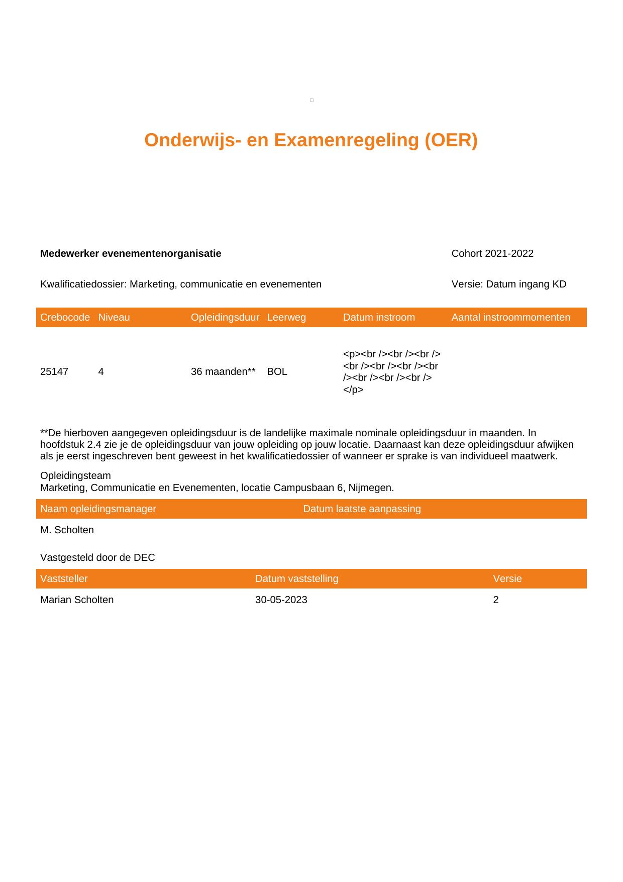 Medewerker evenementenorganisatie 25147BOL-NYM in cohort 2021-2022