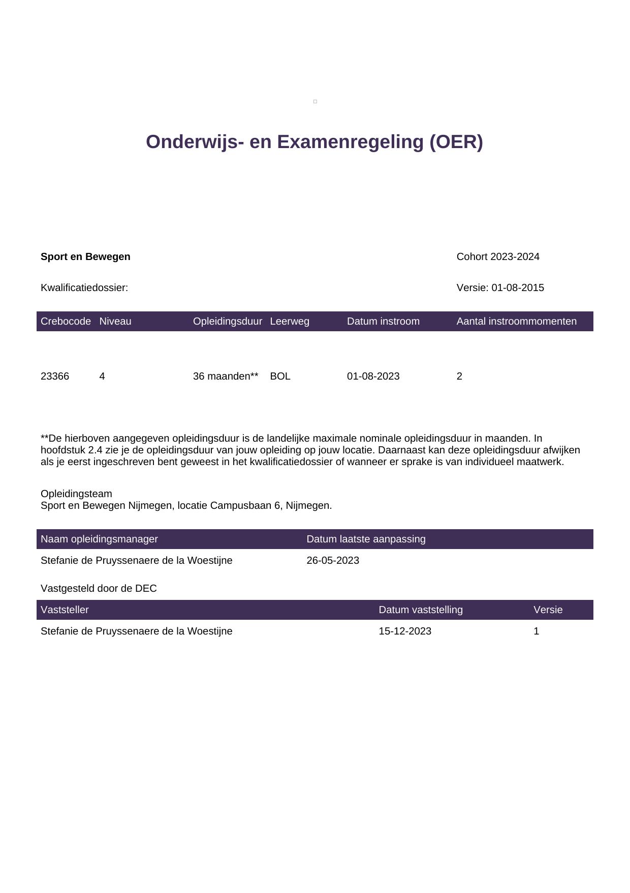 Sport en Bewegen 23366BOL-NYM in cohort 2023-2024