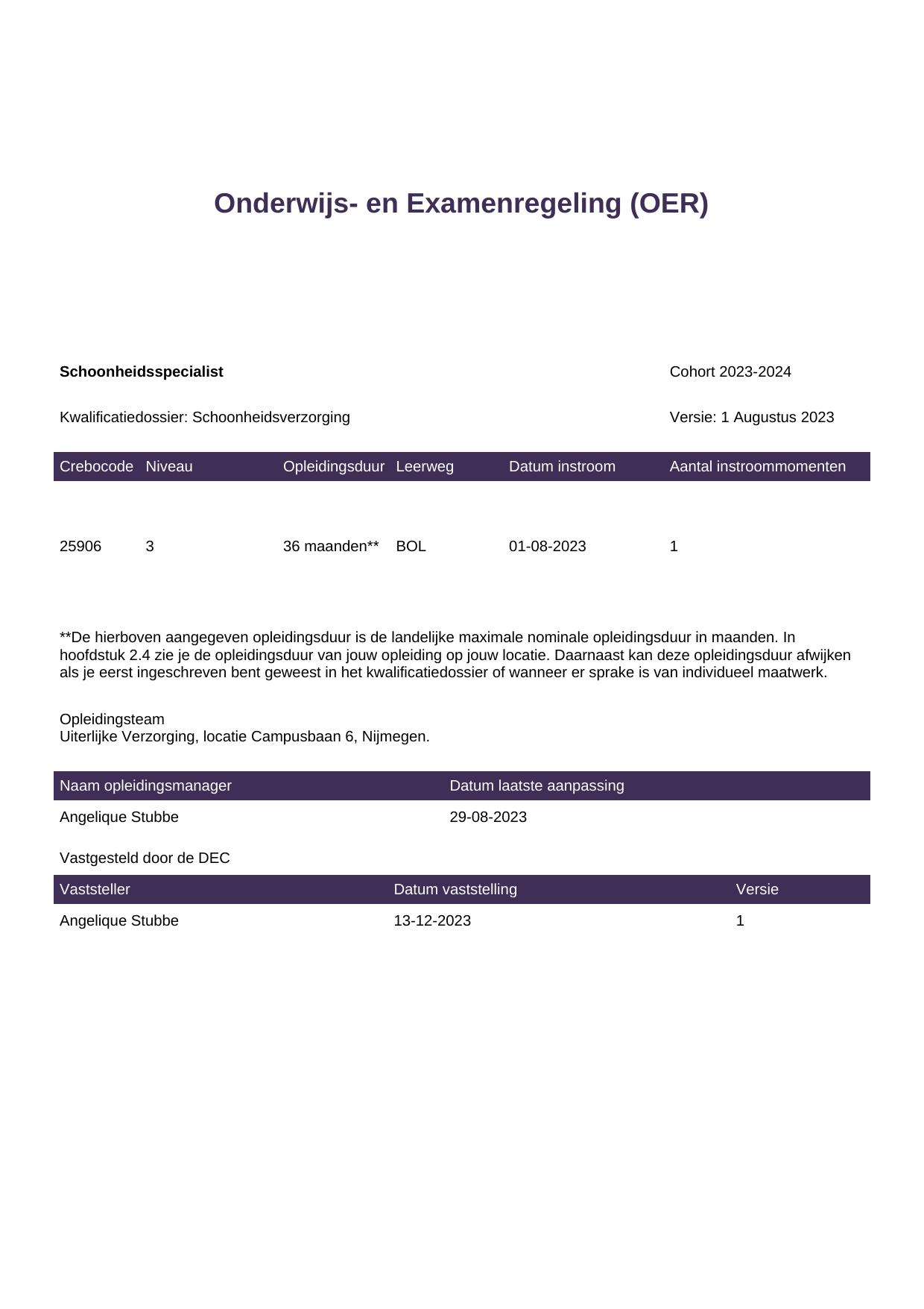 Schoonheidsspecialist 25906BOL-NYM in cohort 2023-2024