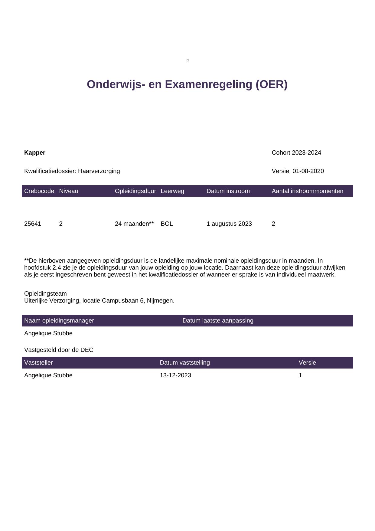 Kapper 25641BOL-NYM in cohort 2023-2024