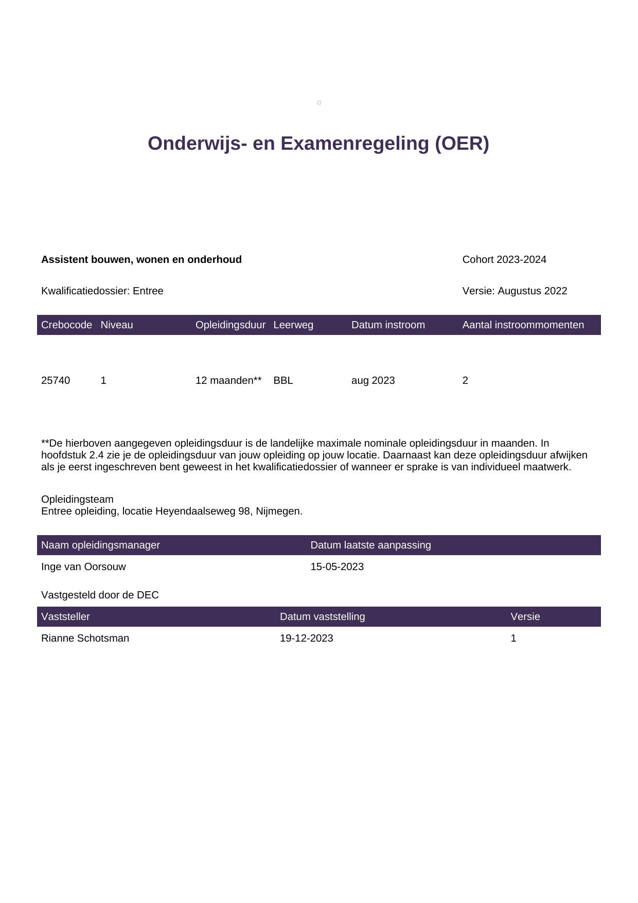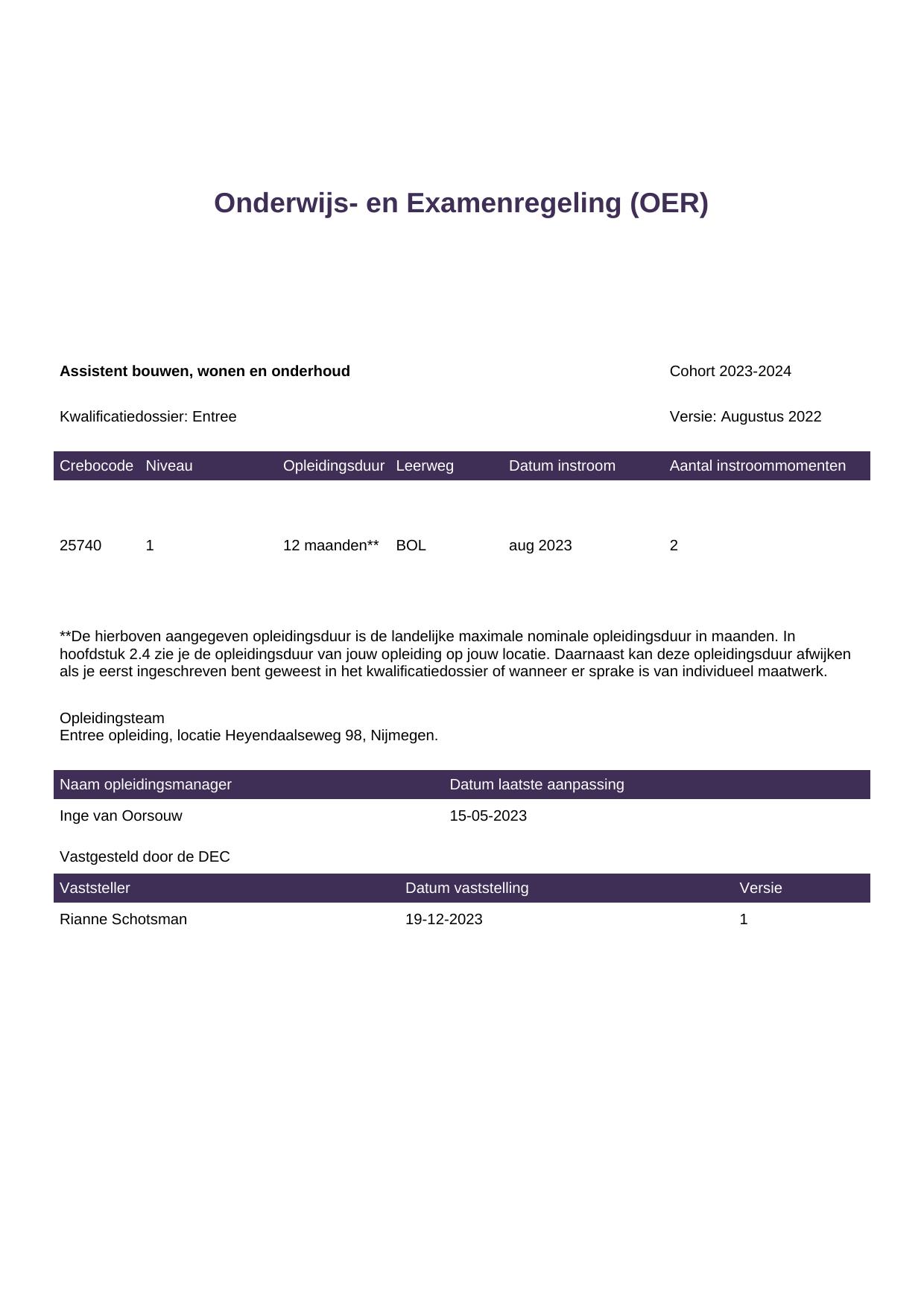 Assistent bouwen, wonen en onderhoud 25740BOL-NYM in cohort 2023-2024