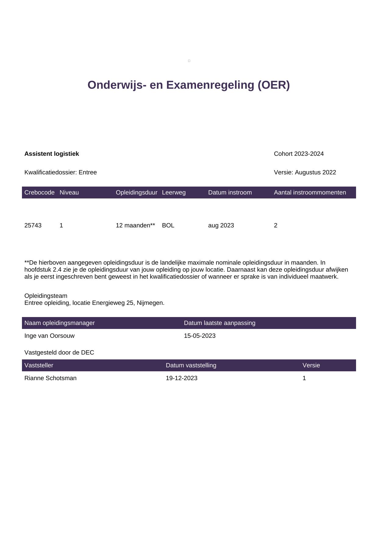Assistent logistiek 25743BBL-NYM in cohort 2023-2024