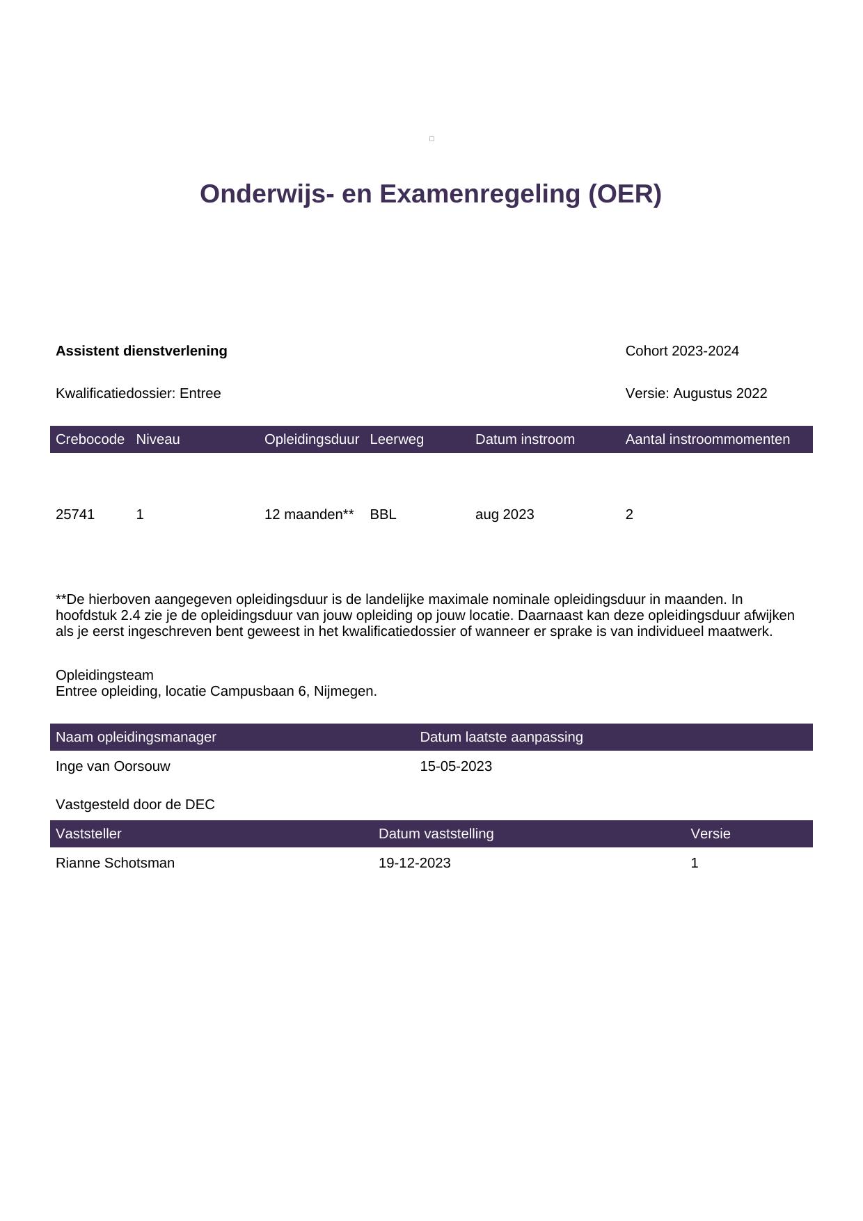 Assistent dienstverlening 25741BOL-NYM in cohort 2023-2024