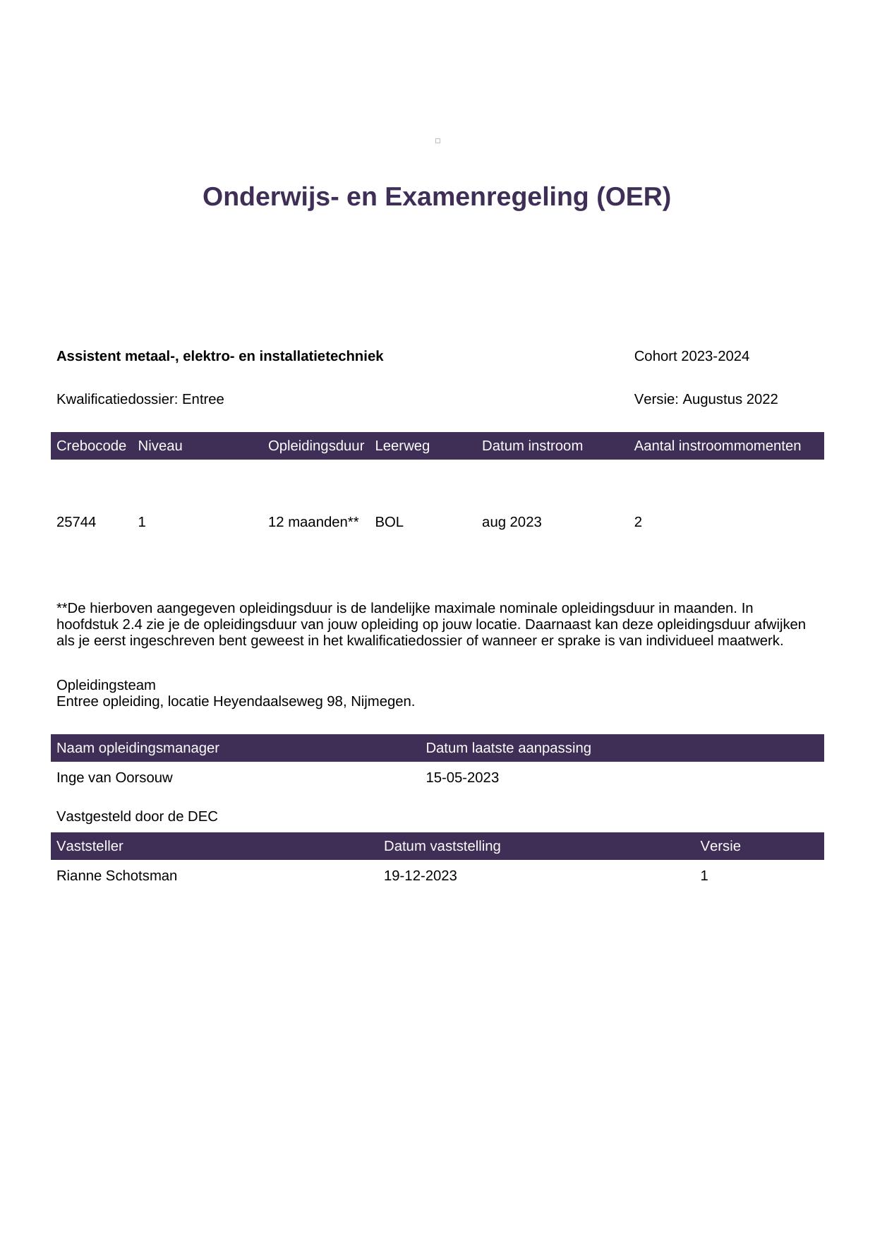 Assistent metaal-, elektro- en installatietechniek 25744BBL-NYM in cohort 2023-2024