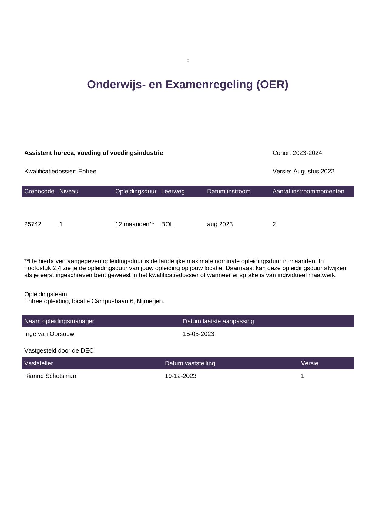 Assistent horeca, voeding of voedingsindustrie 25742BOL-NYM in cohort 2023-2024