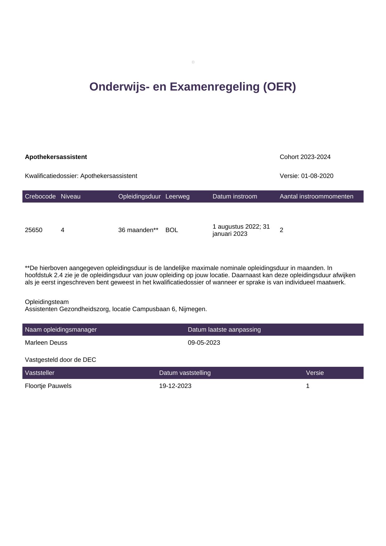 Apothekersassistent 25650BOL-NYM in cohort 2023-2024