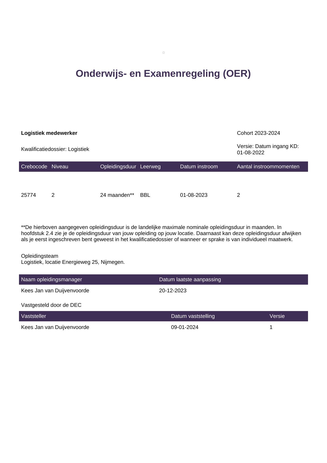 Logistiek medewerker 25774BBL-NYM in cohort 2023-2024