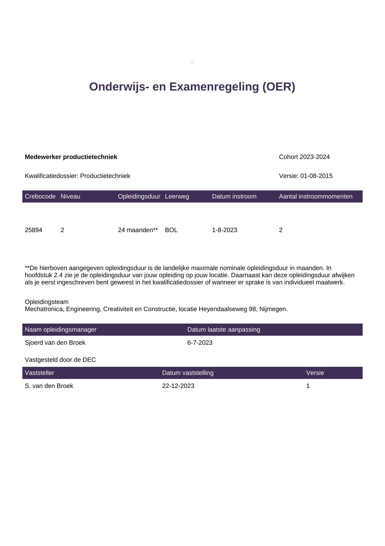 Medewerker productietechniek 25894BOL-NYM in cohort 2023-2024