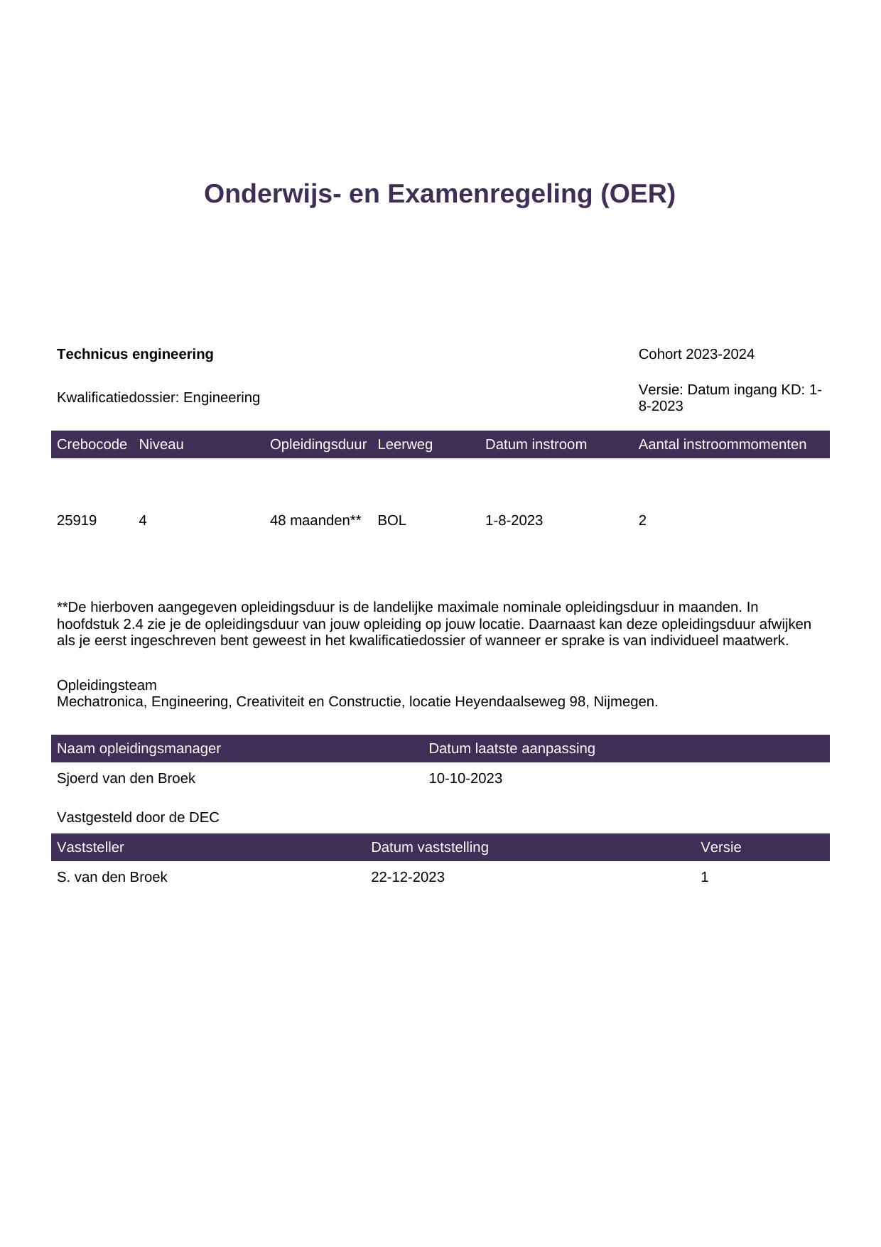 Technicus engineering 25919BOL-NYM-WTB in cohort 2023-2024