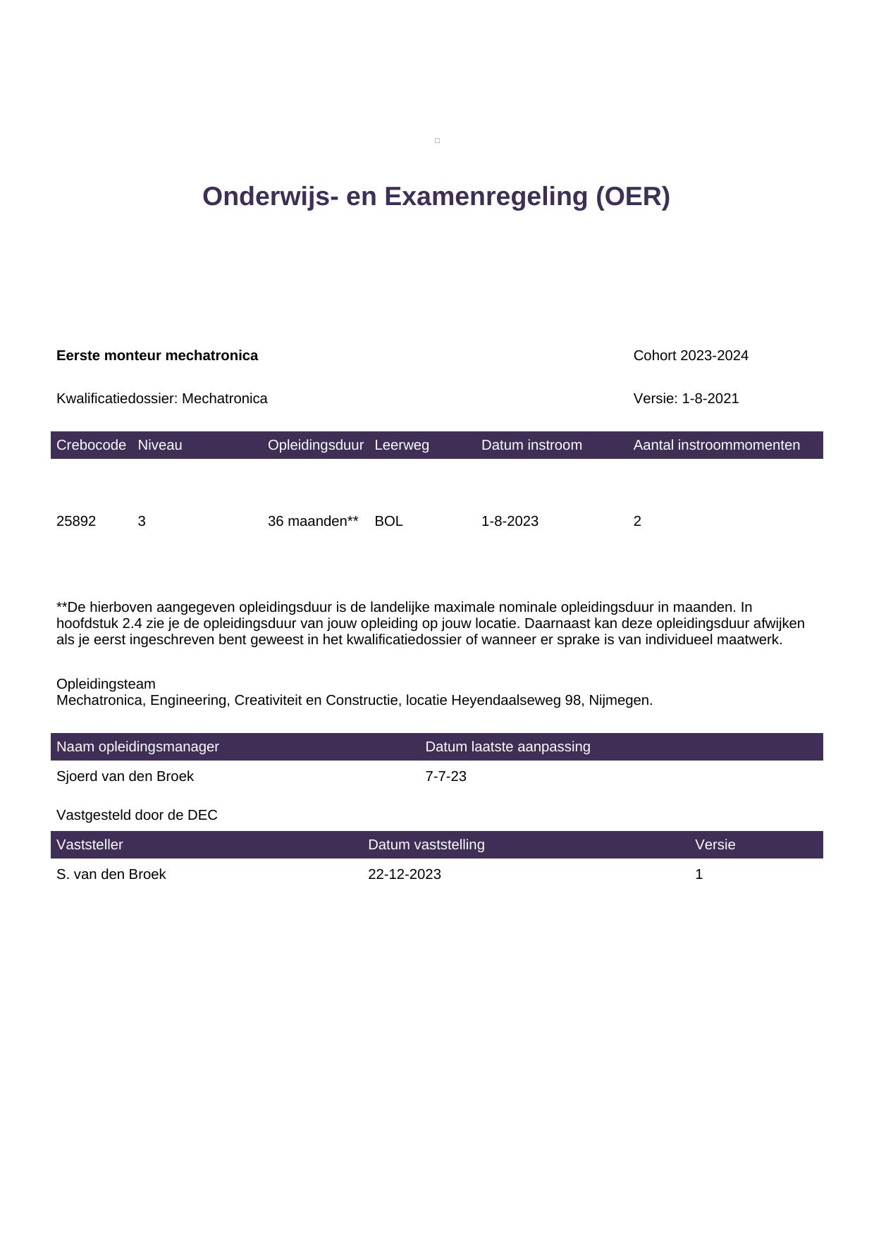 Eerste monteur mechatronica 25892BOL-NYM in cohort 2023-2024