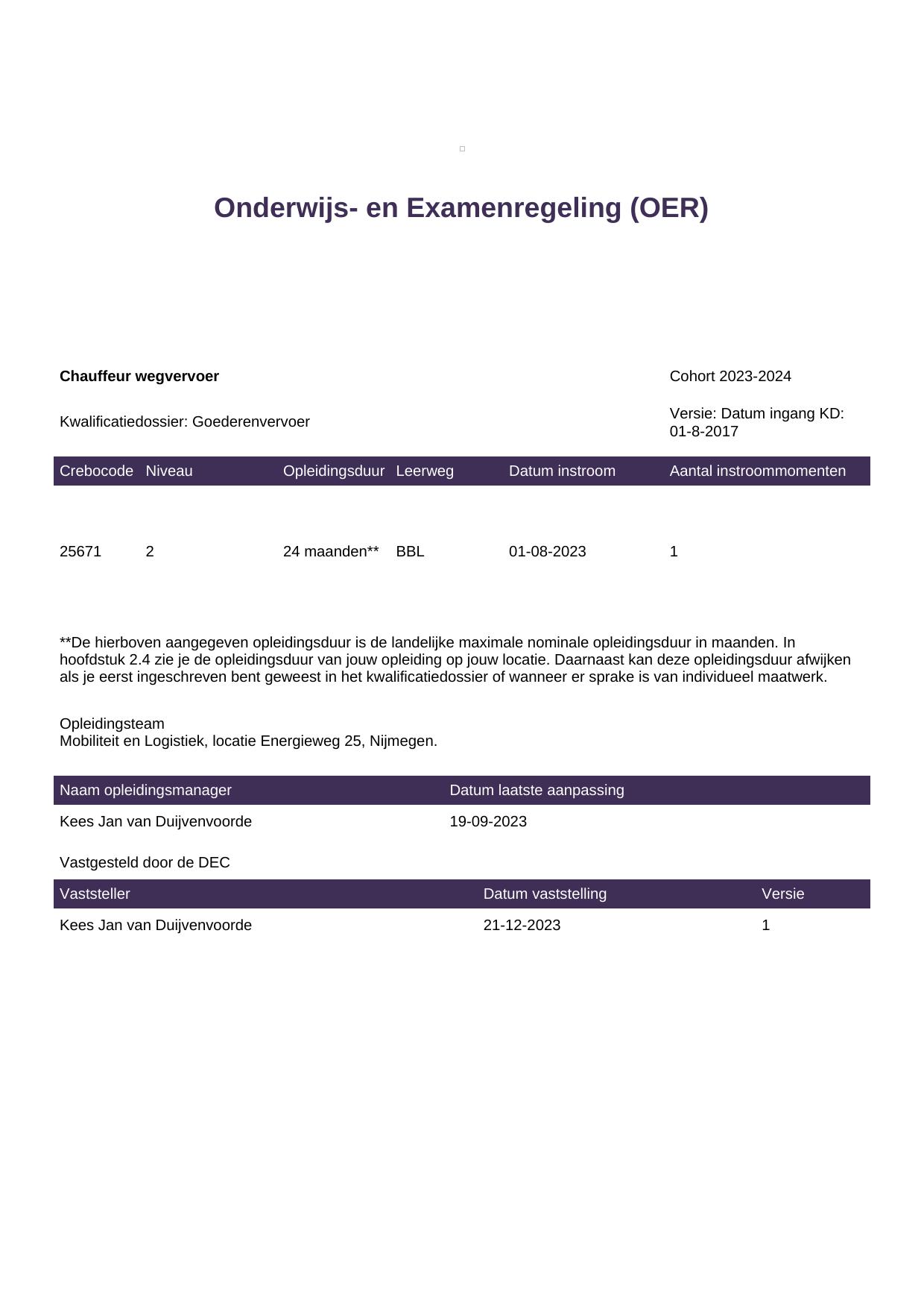 Chauffeur wegvervoer 25671BBL-NYM in cohort 2023-2024
