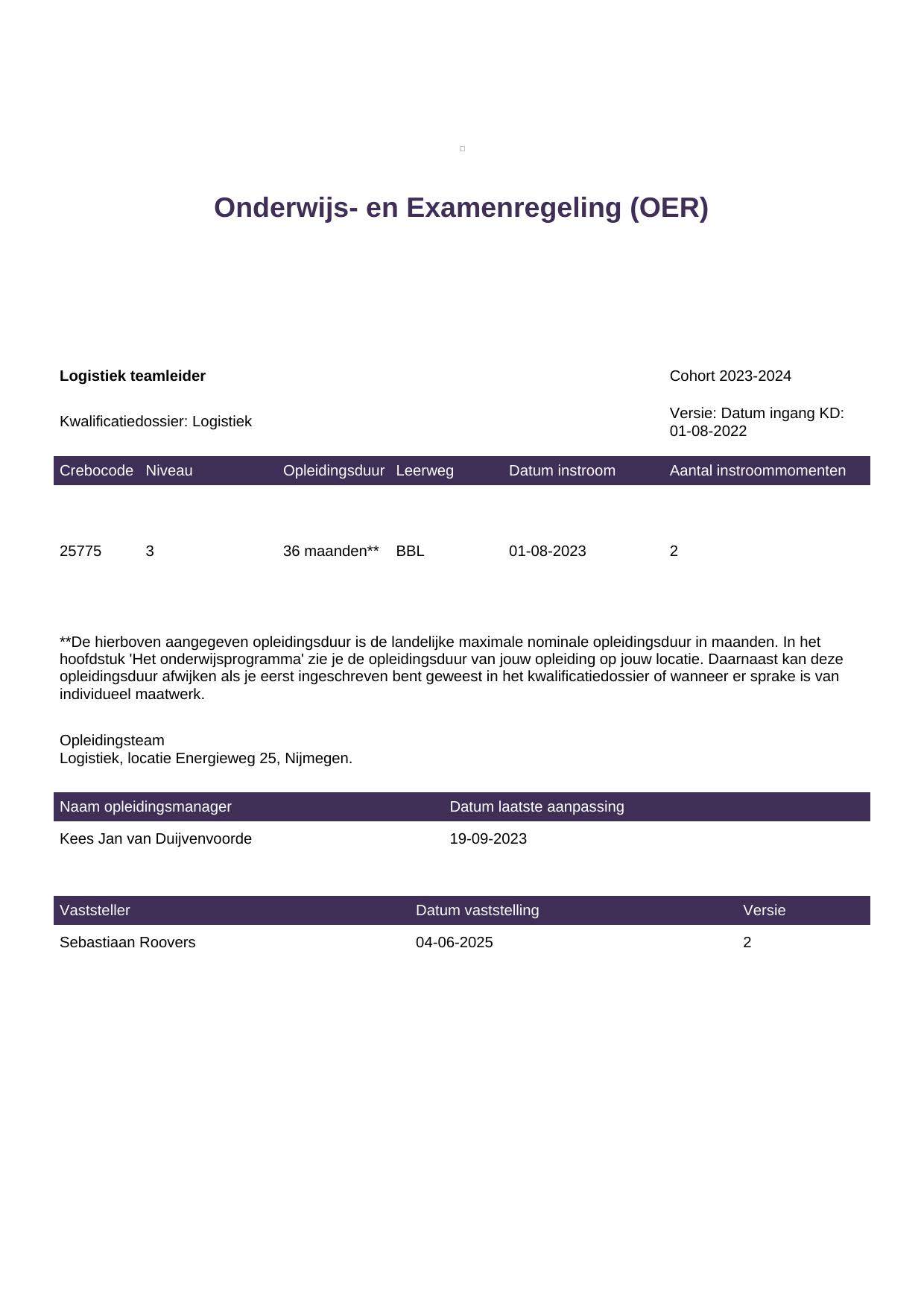 Logistiek teamleider 25775BBL-NYM in cohort 2023-2024