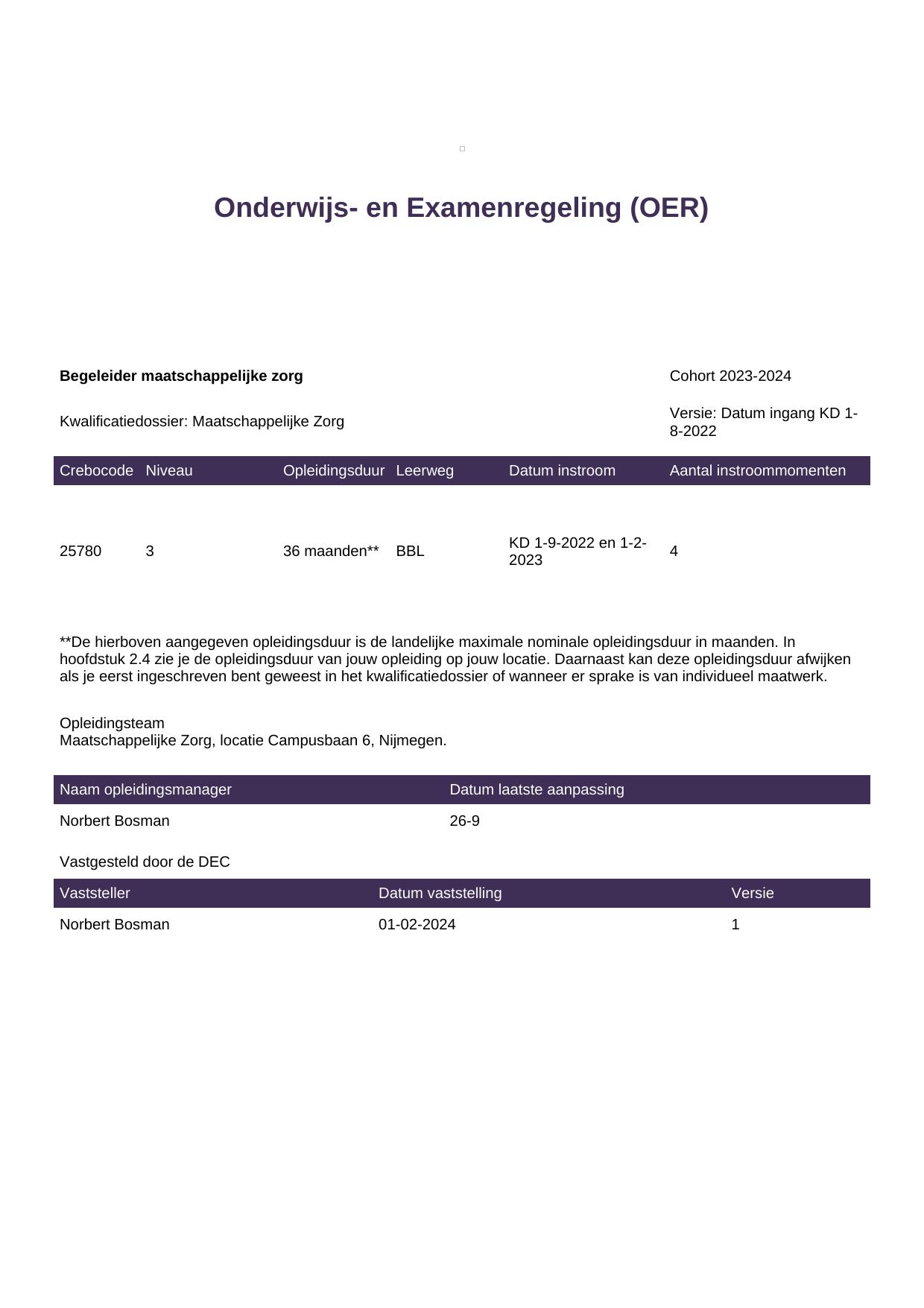 Begeleider maatschappelijke zorg 25780BBL-NYM in cohort 2023-2024