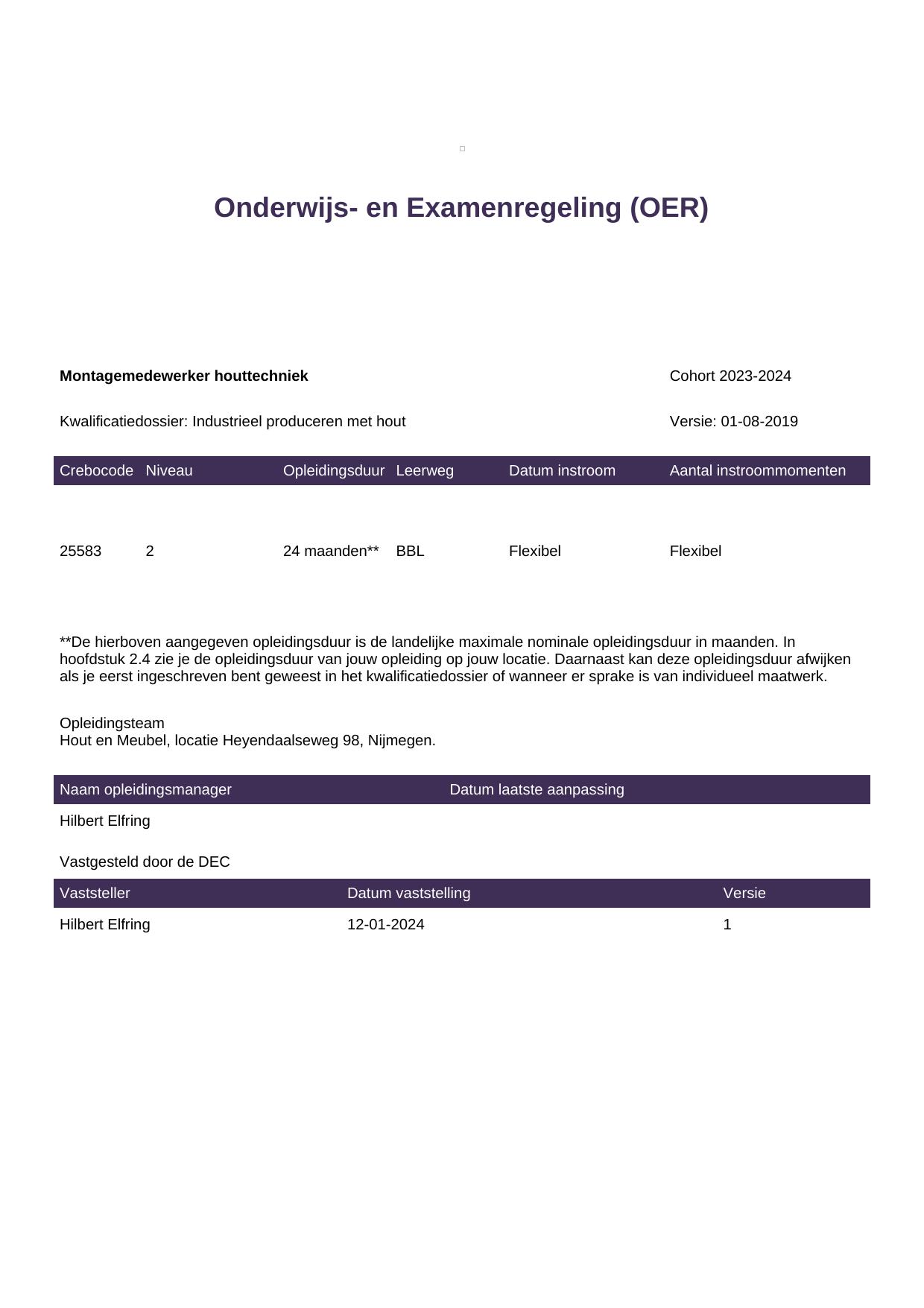 Allround montagemedewerker houttechniek 25585BBL-NYM in cohort 2023-2024