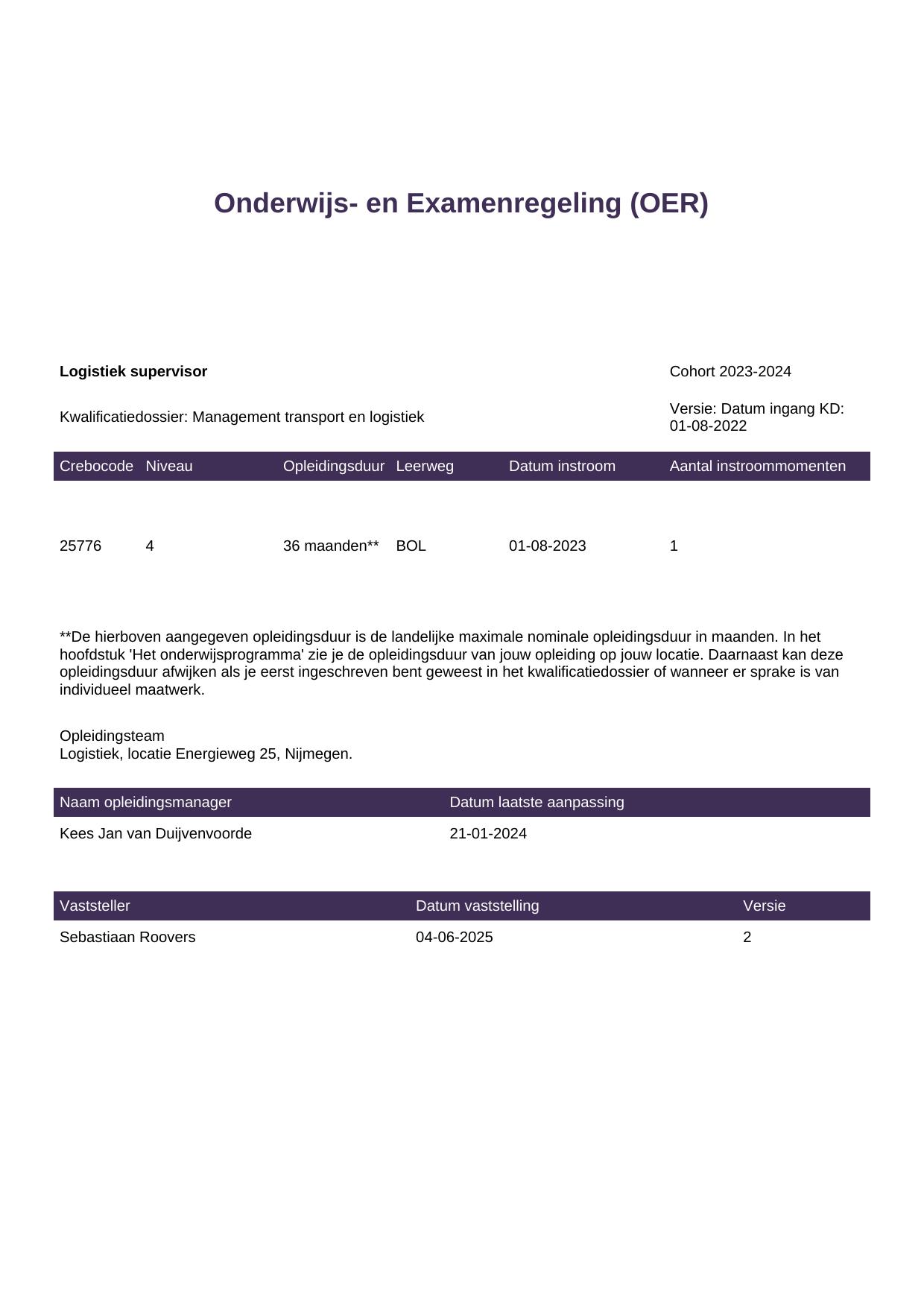 Logistiek supervisor 25776BOL-NYM in cohort 2023-2024