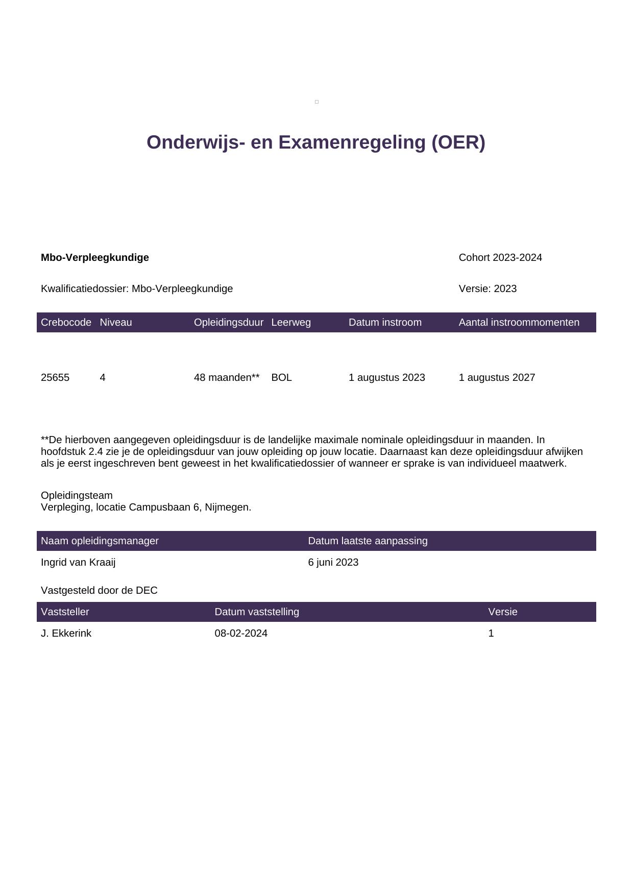 Mbo-Verpleegkundige 25655BBL-NYM in cohort 2023-2024