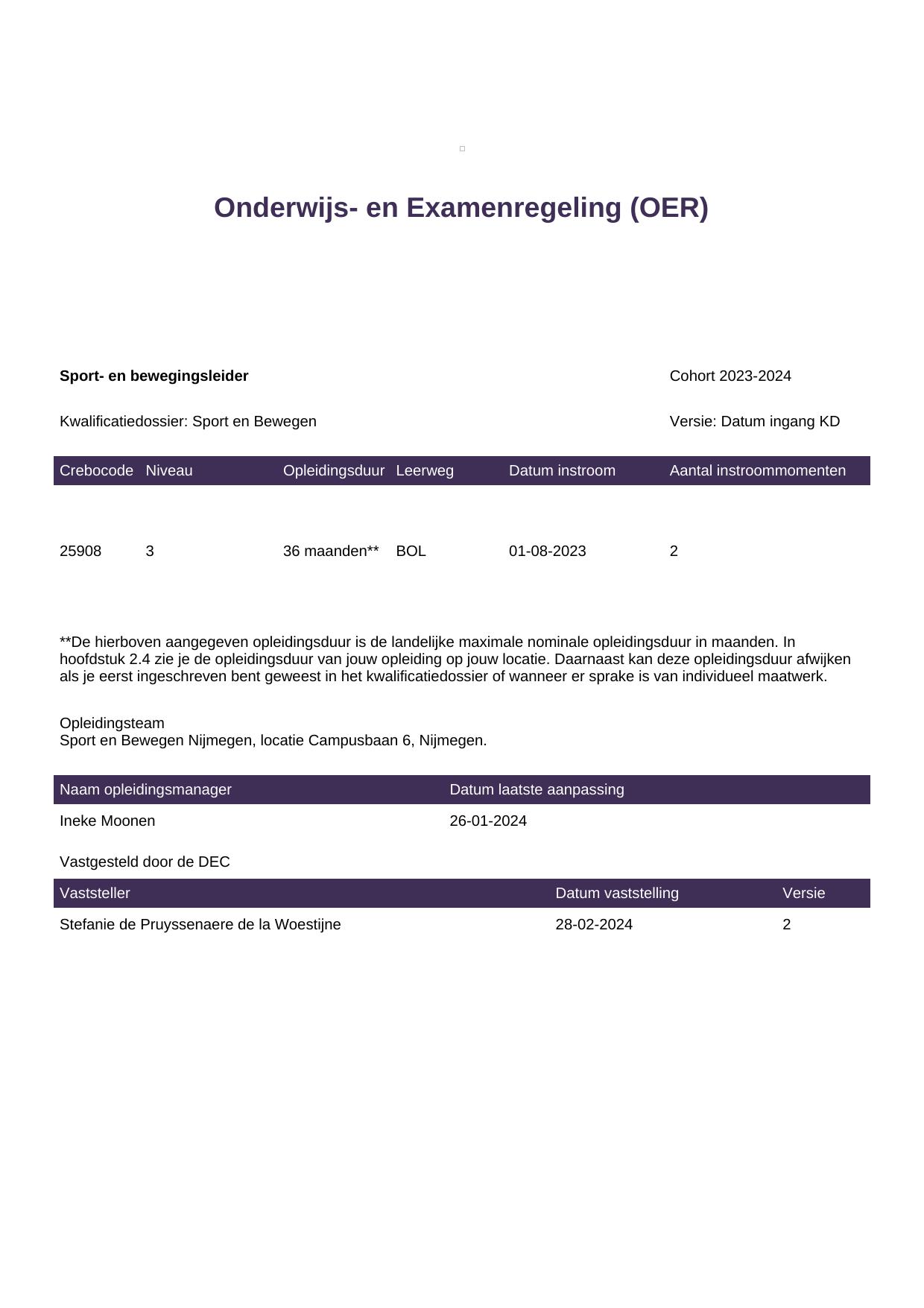 Sport- en bewegingsleider 25908BOL-NYM in cohort 2023-2024
