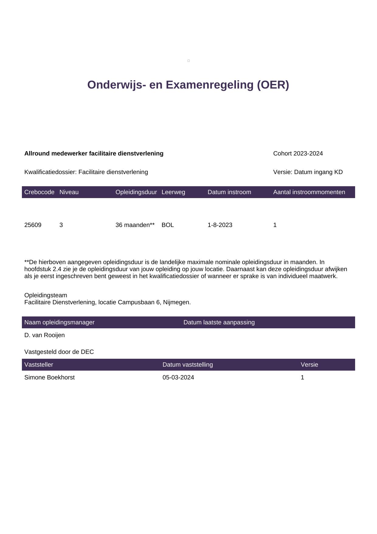 Allround medewerker facilitaire dienstverlening 25609BOL-NYM in cohort 2023-2024