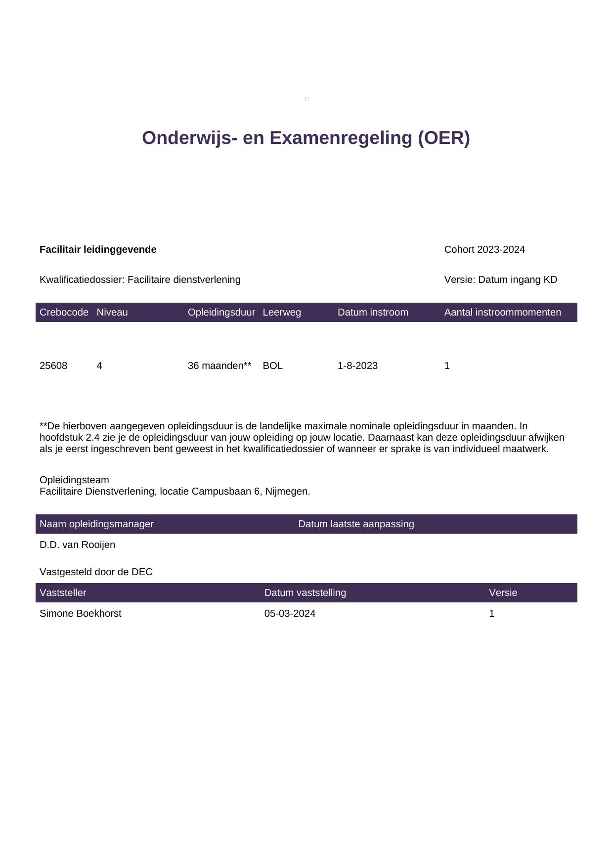 Facilitair leidinggevende 25608BOL-NYM-2J in cohort 2023-2024
