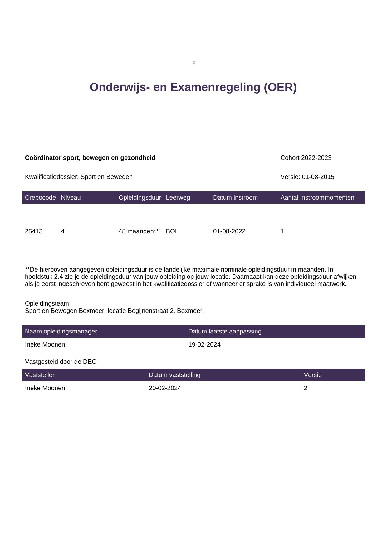 Coördinator sport, bewegen en gezondheid 25413BOL-BOX in cohort 2022-2023