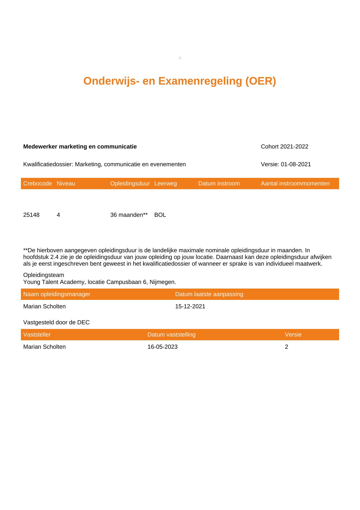 Medewerker marketing en communicatie 25148BOL-NYM-YTA in cohort 2021-2022
