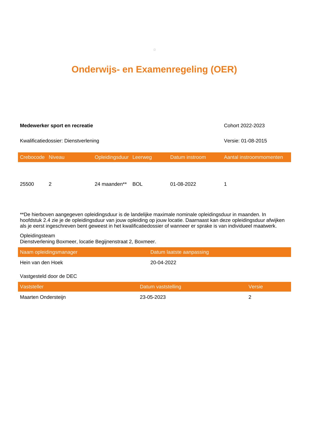 Medewerker sport en recreatie 25500BOL-BOX in cohort 2022-2023