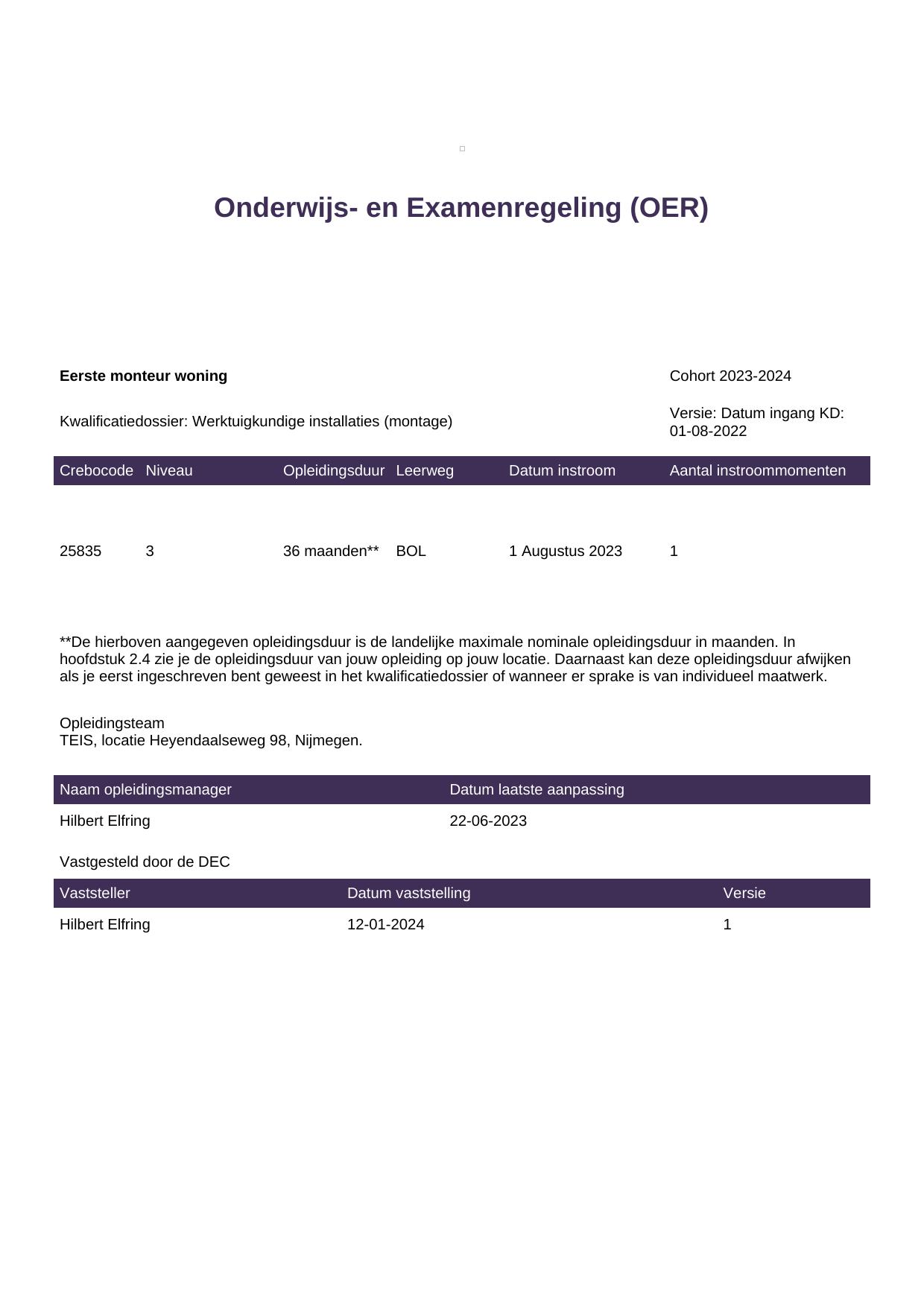 Eerste monteur woning 25835BOL-NYM in cohort 2023-2024