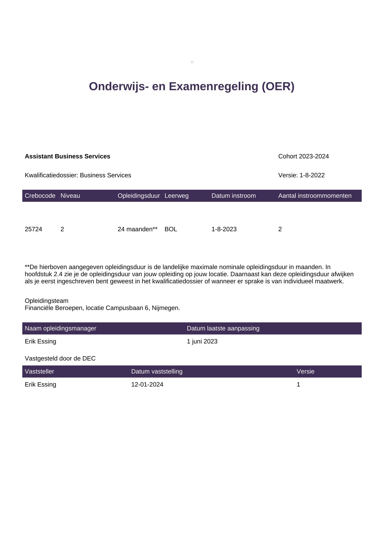 Assistant Business Services 25724BOL-NYM-KORT in cohort 2023-2024