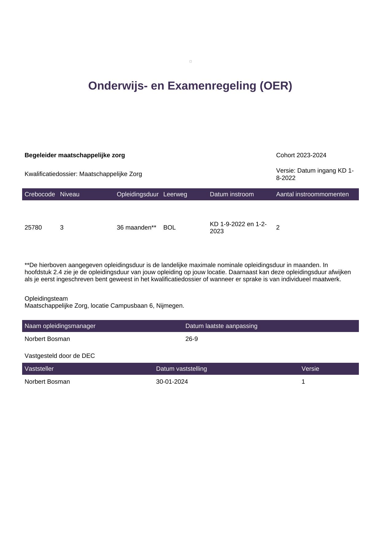 Begeleider maatschappelijke zorg 25780BOL-NYM in cohort 2023-2024