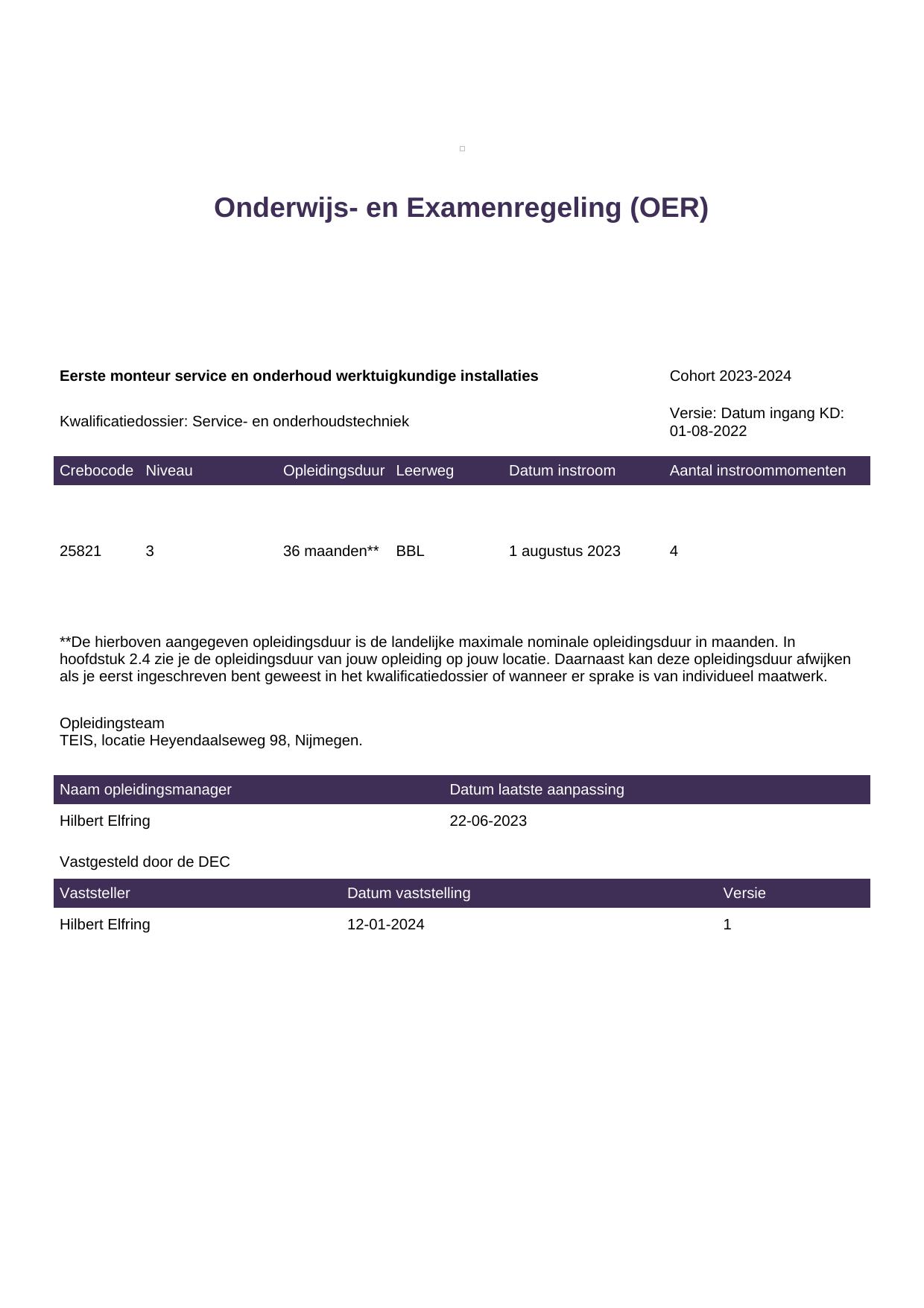 Eerste monteur service en onderhoud werktuigkundige installaties 25821BBL-NYM in cohort 2023-2024