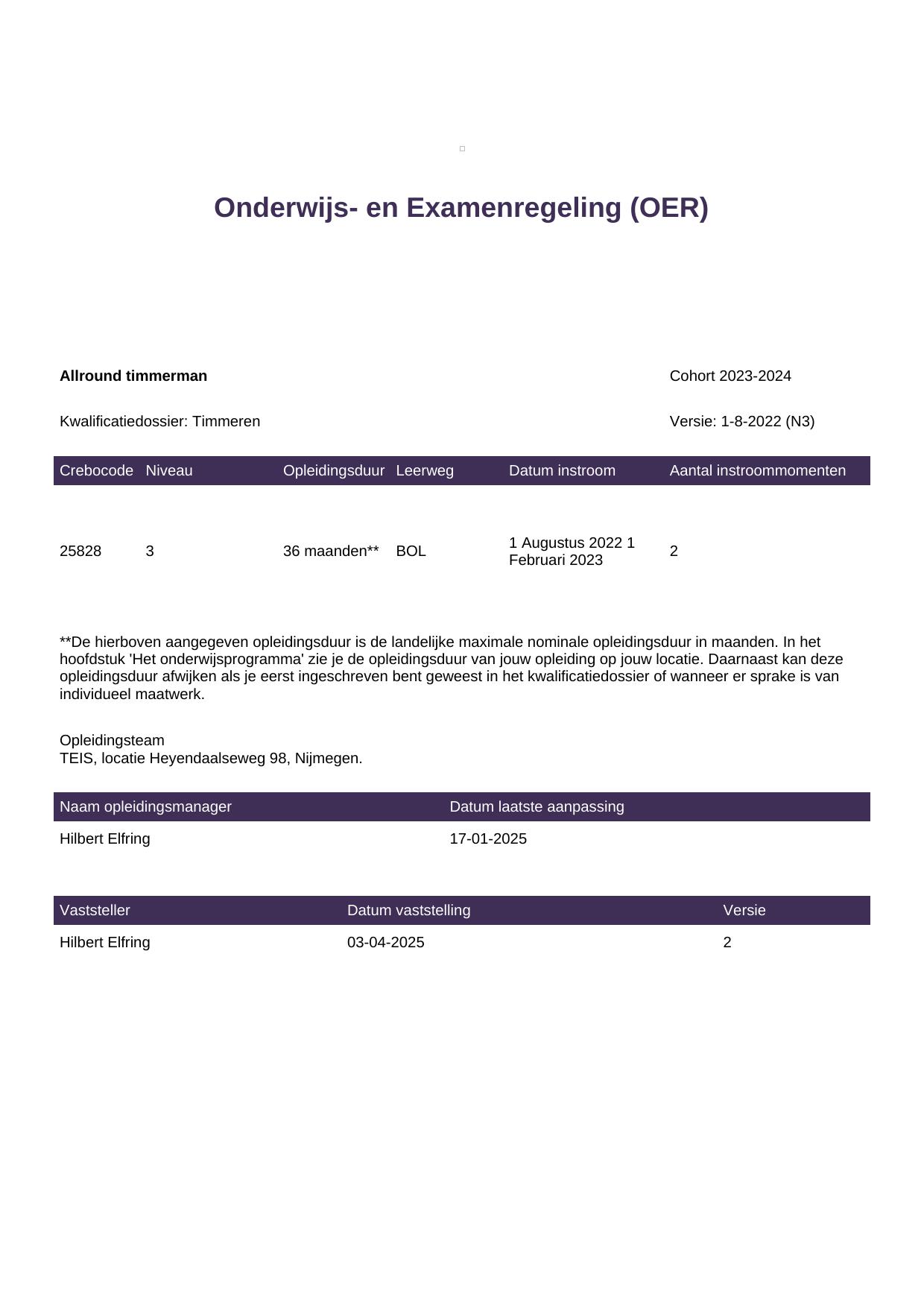 Allround timmerman 25828BOL-NYM in cohort 2023-2024