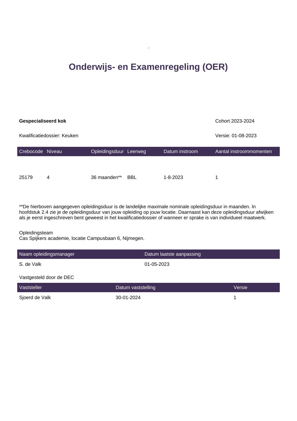 Gespecialiseerd kok 25179BBL-NYM-CSA in cohort 2023-2024