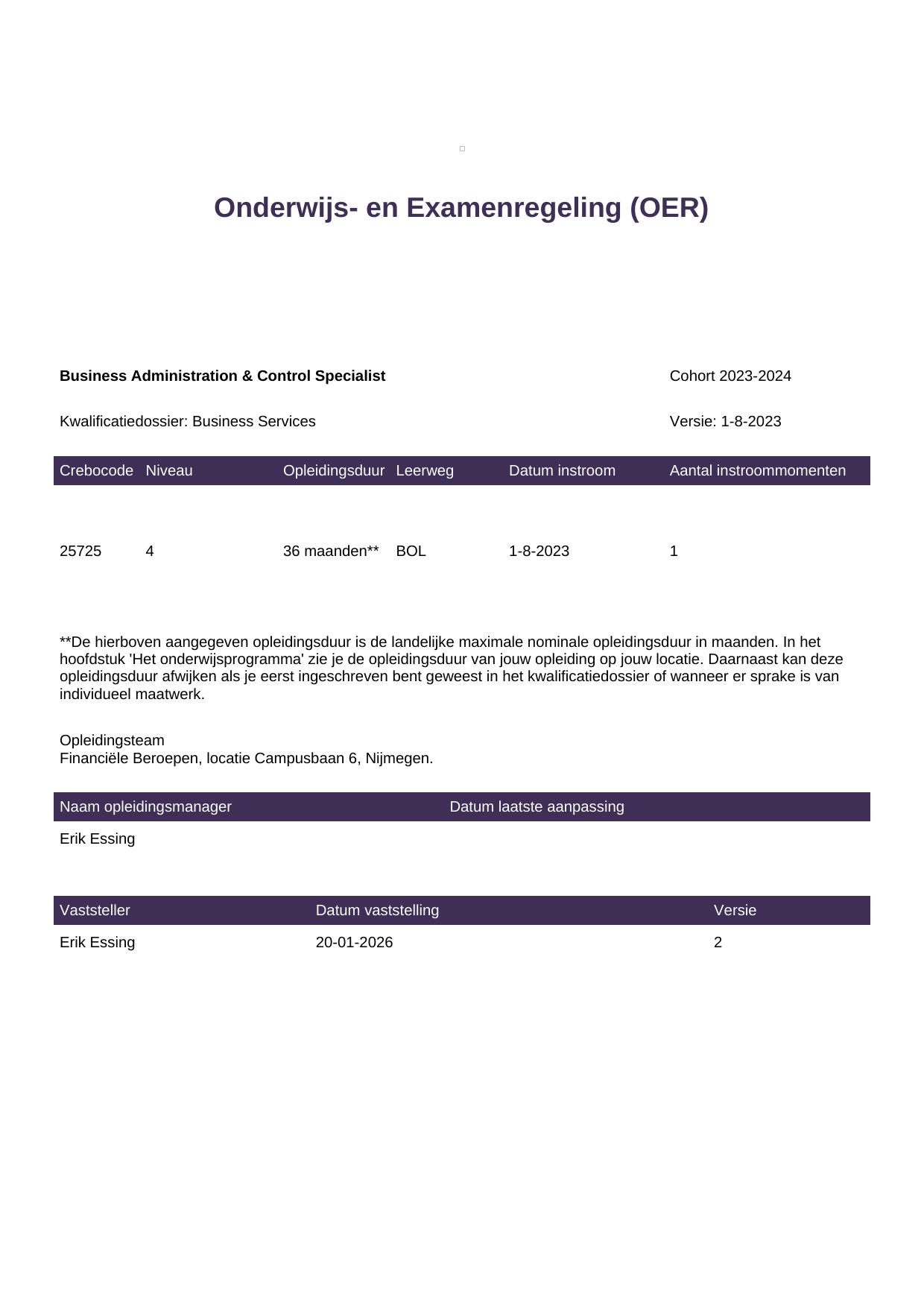 Business Administration & Control Specialist 25725BOL-NYM in cohort 2023-2024